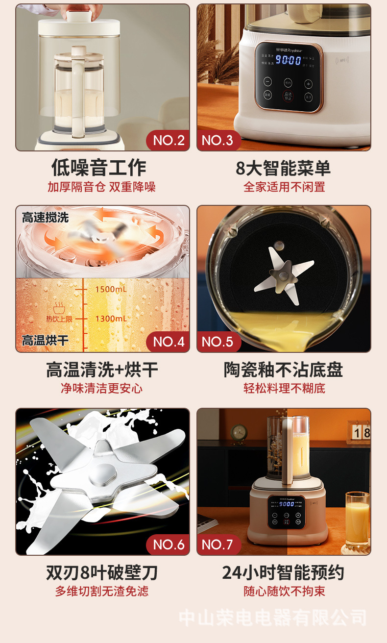 롱스타 저소음 블렌더 가정용 다기능 소형 자동 가열 두유 제조기 필터 불필요 신형 요리기