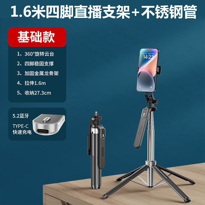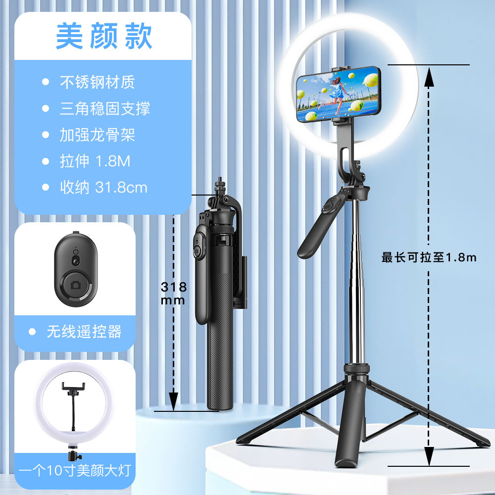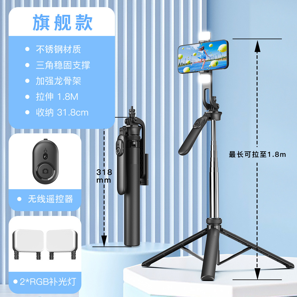 P185 블루투스 셀카 스틱 네 코너 프레임 1.8m 텔레스코픽로드 바닥 지원 야외 라이브 여행 사진 셀카 스틱