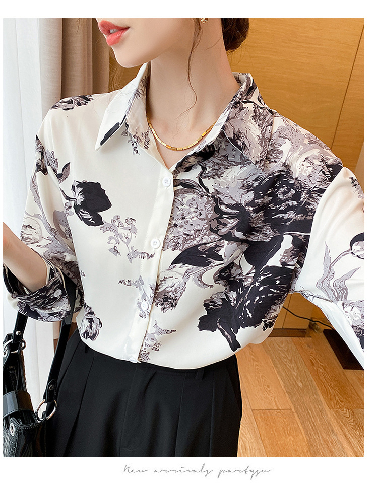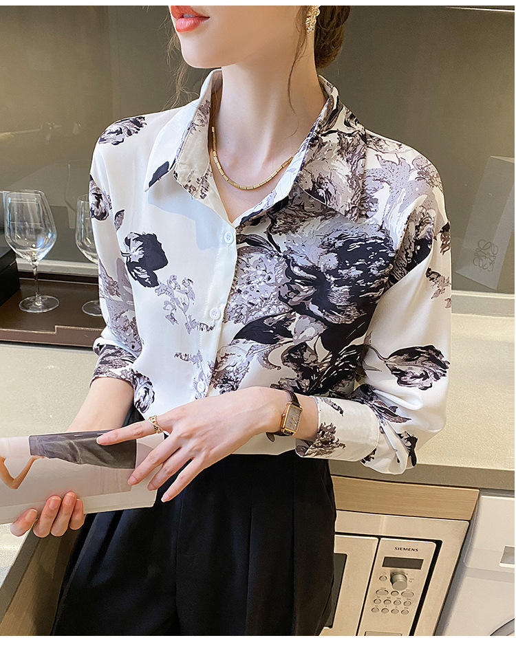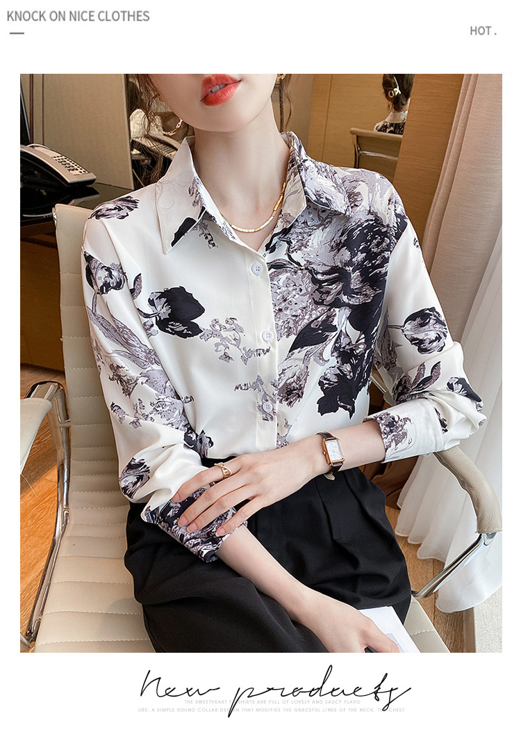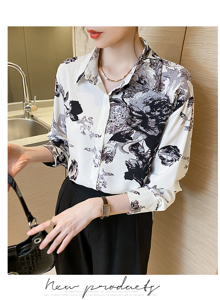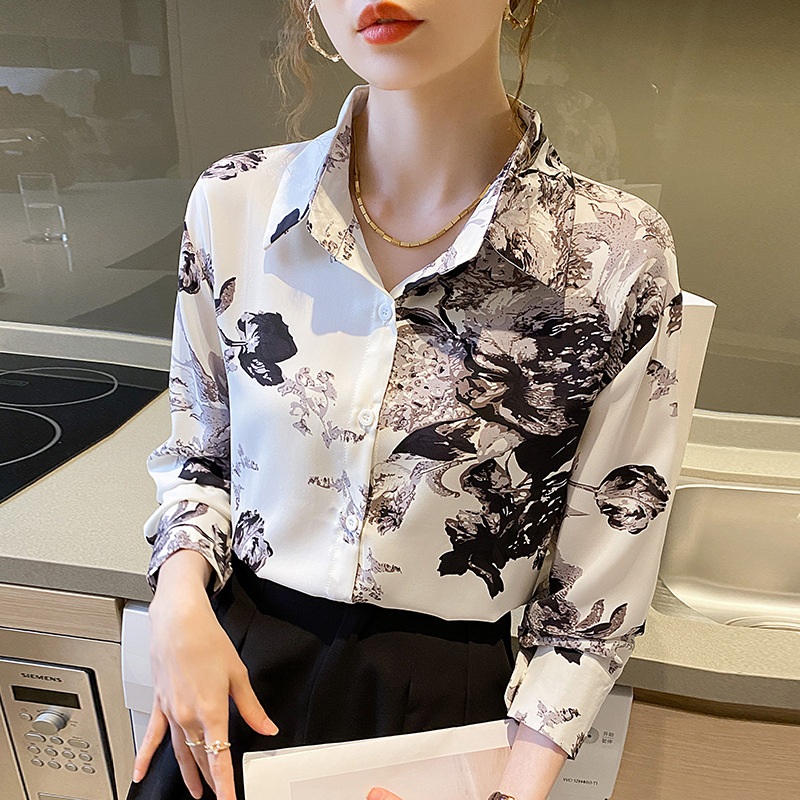 소 프렌치 스위트 톱 2023 가을의 잉크 인쇄 기질 셔츠 여성의 국경 횡단 공급