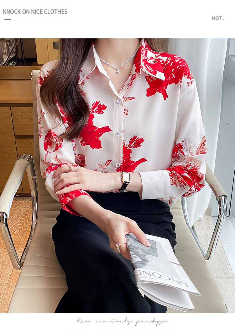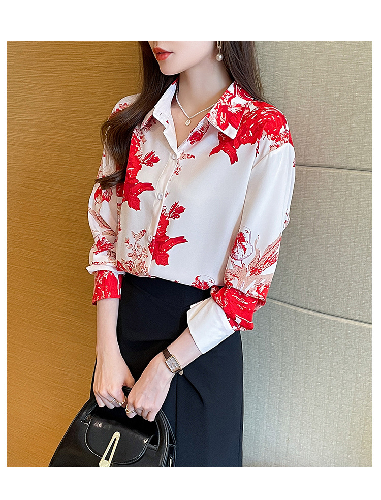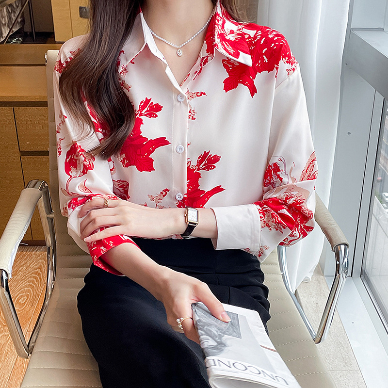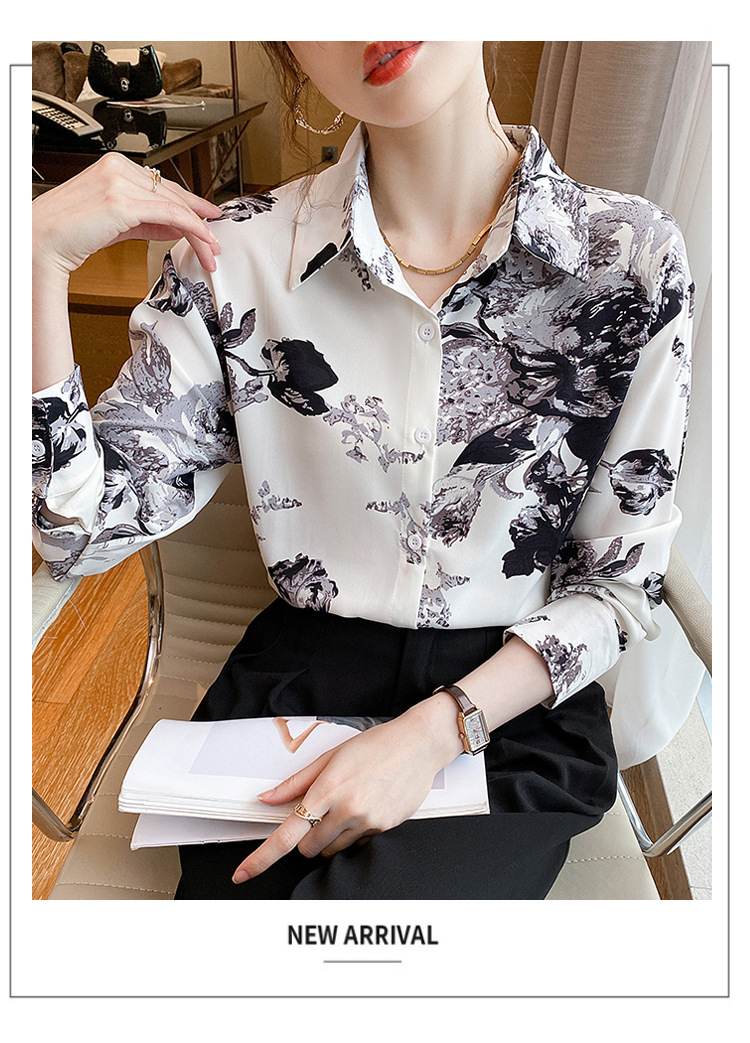소 프렌치 스위트 톱 2023 가을의 잉크 인쇄 기질 셔츠 여성의 국경 횡단 공급