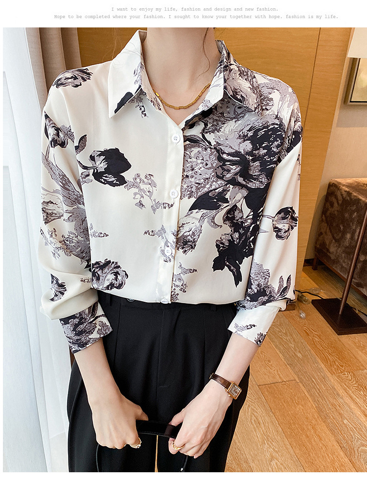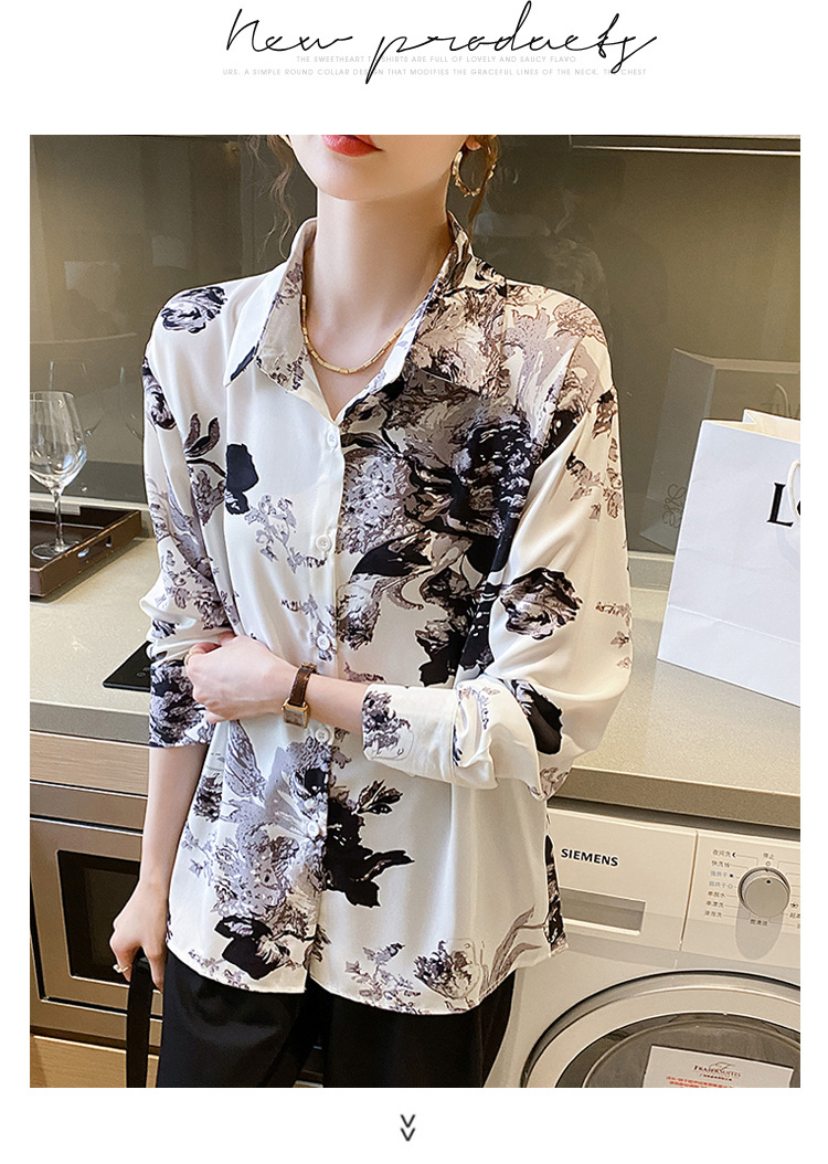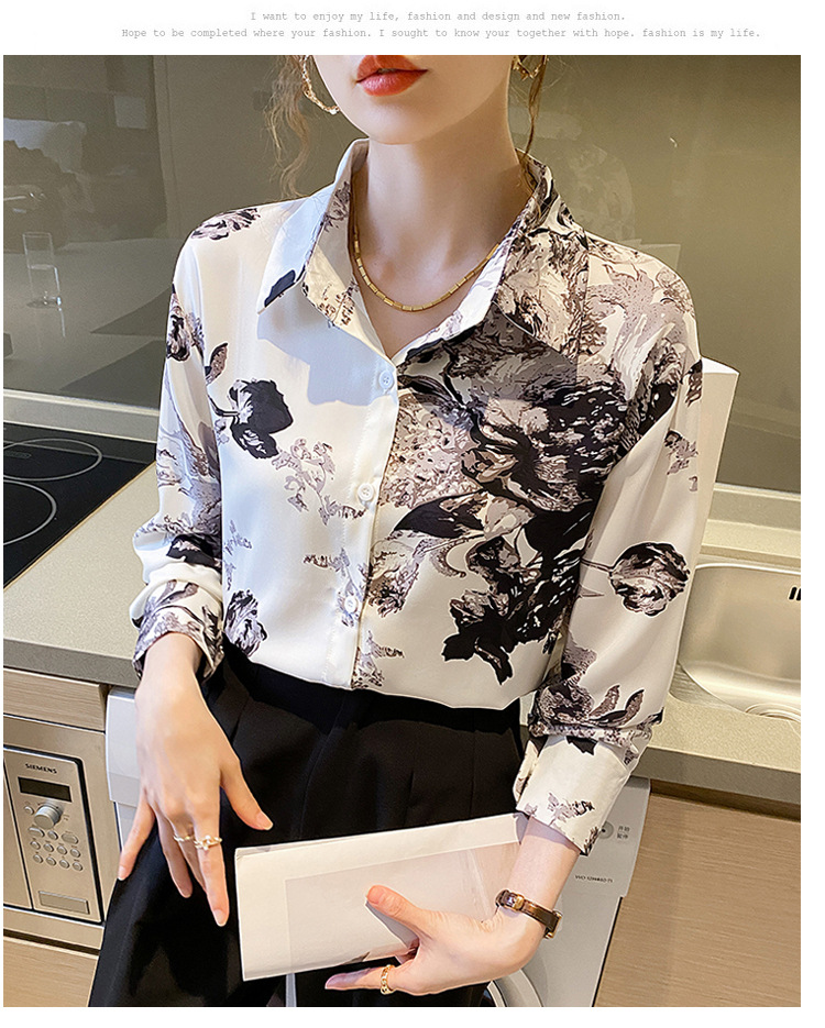 소 프렌치 스위트 톱 2023 가을의 잉크 인쇄 기질 셔츠 여성의 국경 횡단 공급스토어 가기