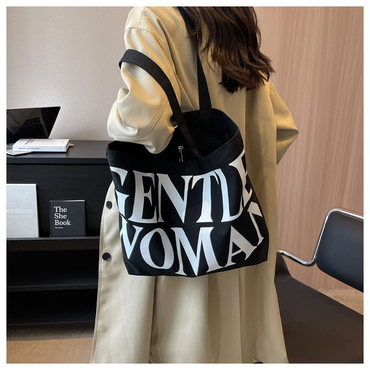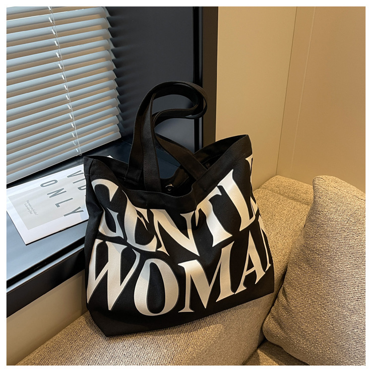 간단한 캔버스 여성 가방 대용량 간단한 새로운 겨울 문학 어깨 가방 캐주얼 작업 통근 토트 백