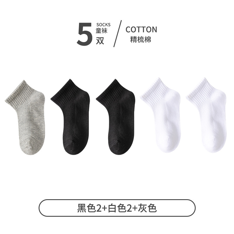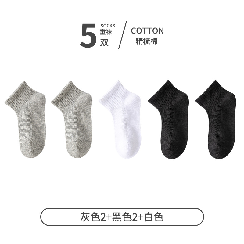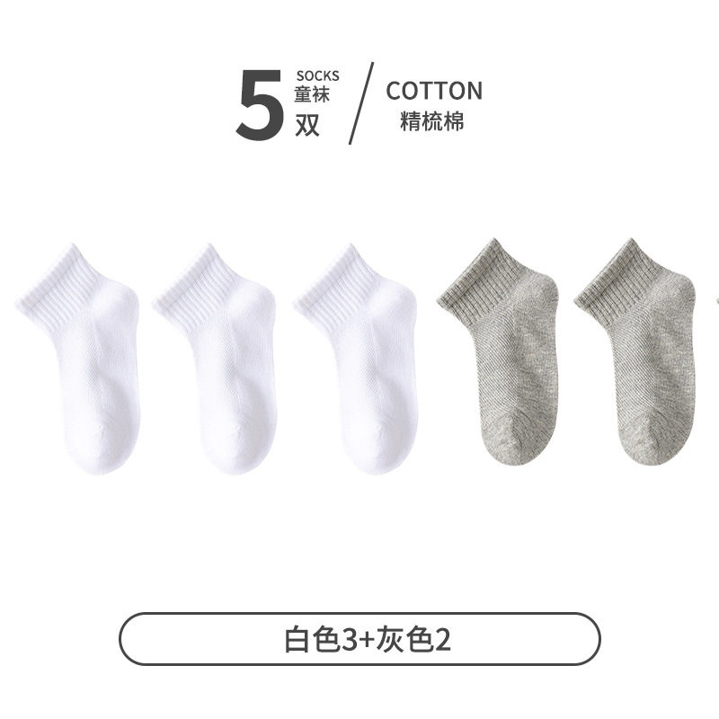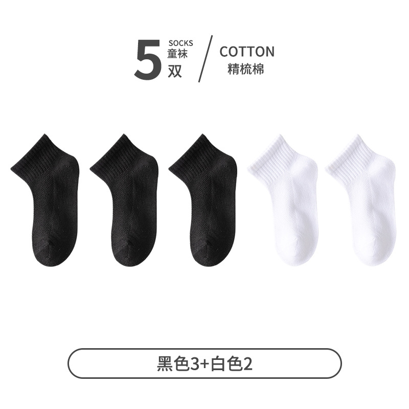 5 쌍 어린이 양말 얇은 여름 면 메쉬 소녀 짧은 양말 소년 학생 흰색 소년 스포츠