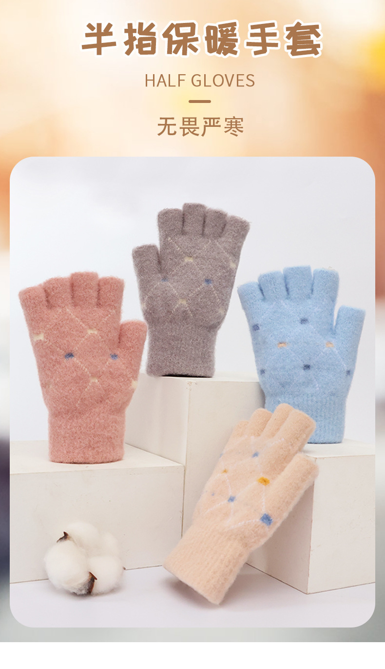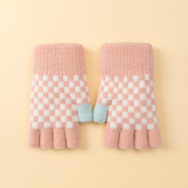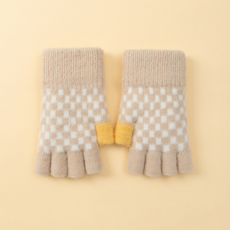 • 패션 바둑판 반 손가락 장갑 "베이지]