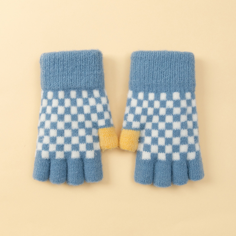 • 패션 바둑판 반 손가락 장갑 [블루]]