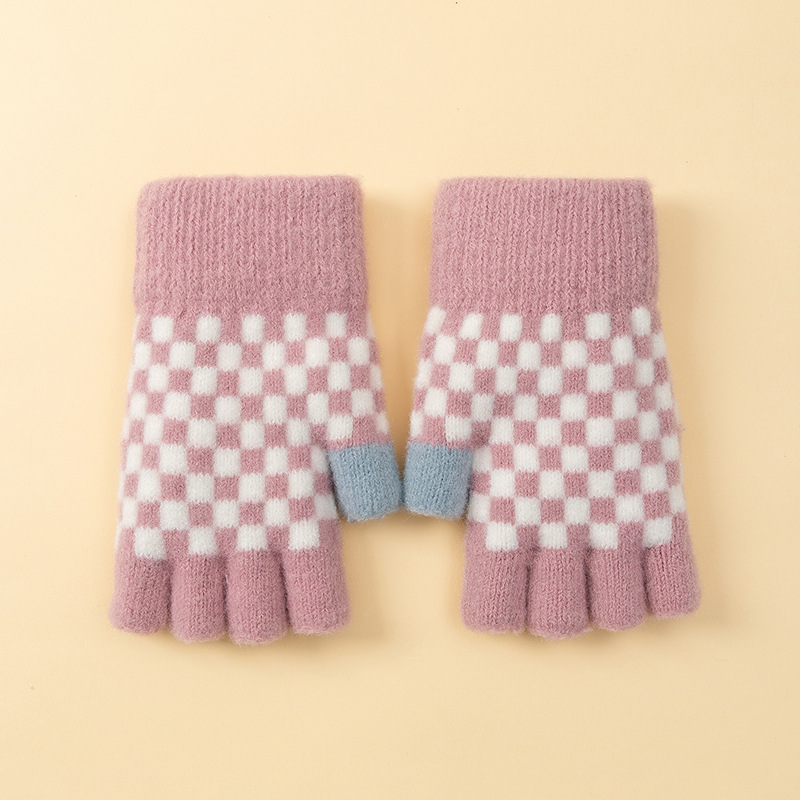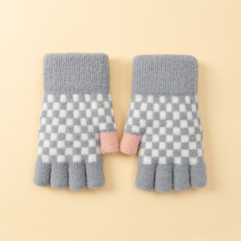 • 패션 바둑판 반 손가락 장갑 [그레이]