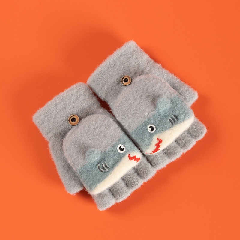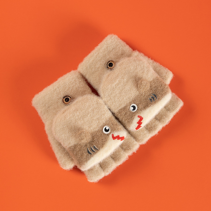 여성용 겨울 반장갑, 플립형, 두꺼운 보온 니트, 만화 캐릭터, 중학생용, 해외 직구, 방풍, 터치스크린 가능스토어 가기
