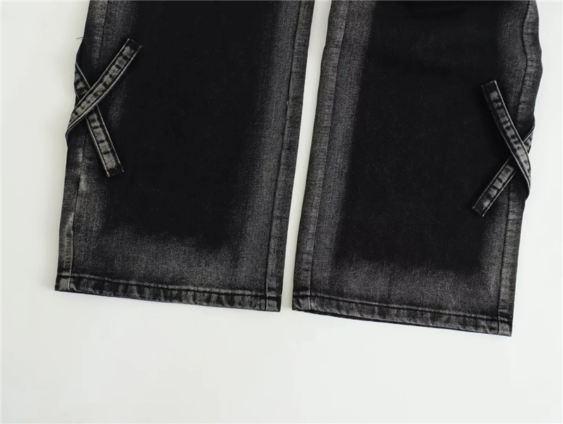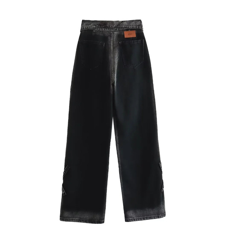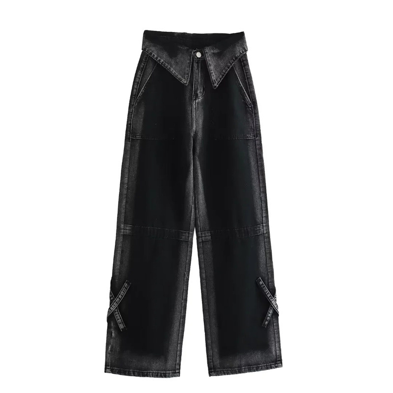 유럽과 미국 스타일 빈티지 워시 화이트 와이드 레그 진 가을 새로운 턴업 하이 웨이스트 편안한 핏 캐주얼 바지스토어 가기