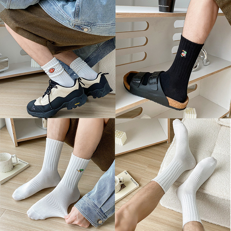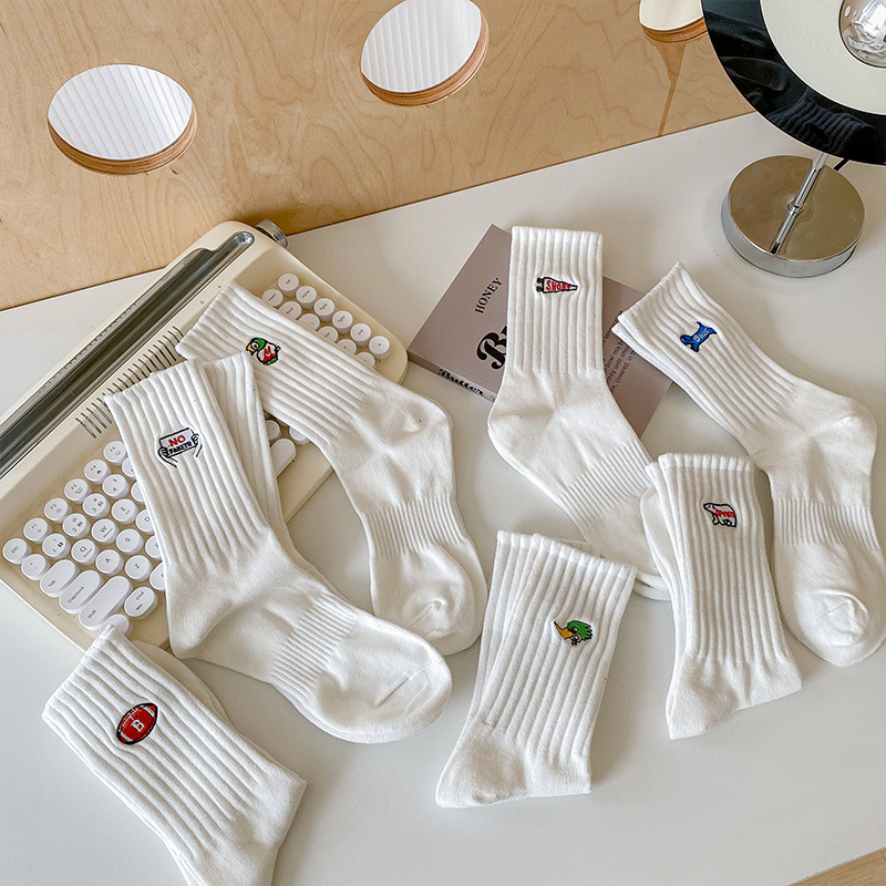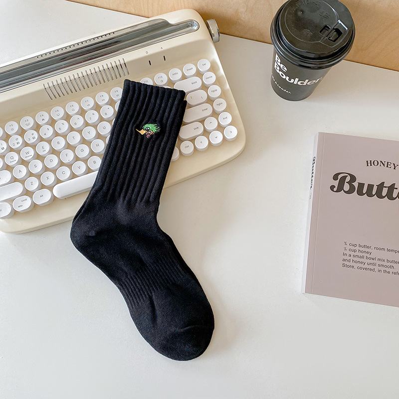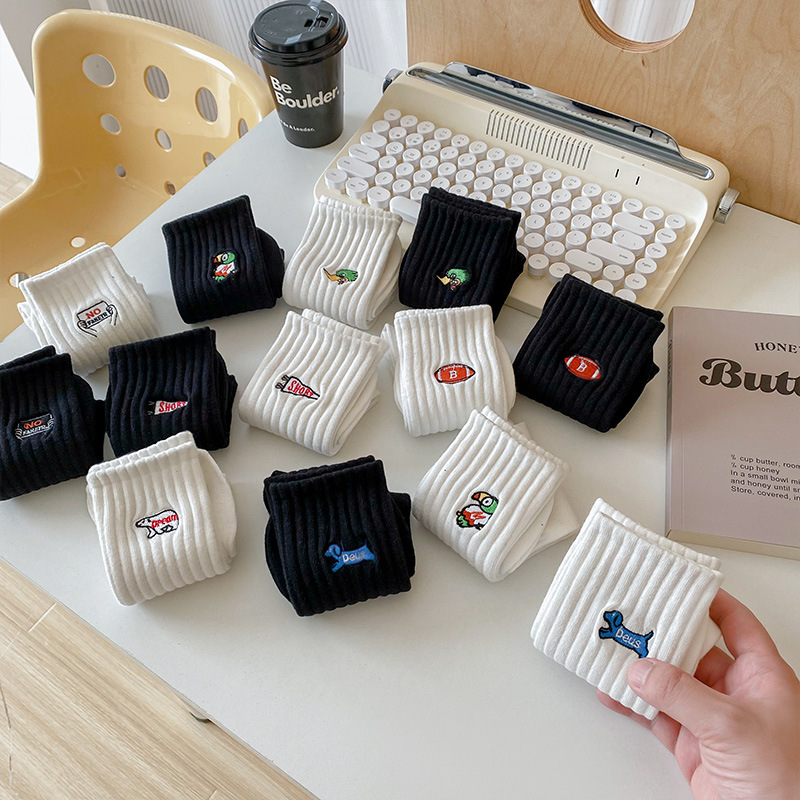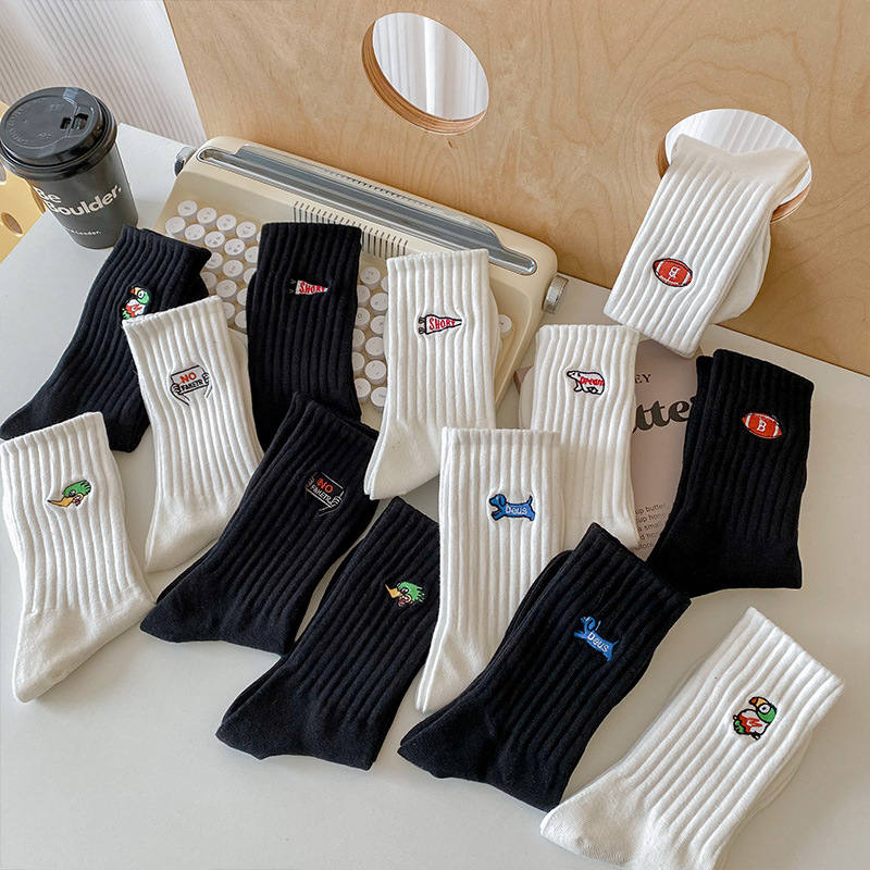 양말 남성용 및 여성용 면 흑백 만화 중간 길이 양말 커플 자수 학생 모든 경기 하이탑 스포츠 스타킹 유행스토어 가기