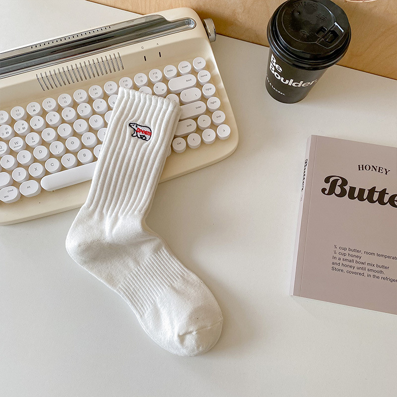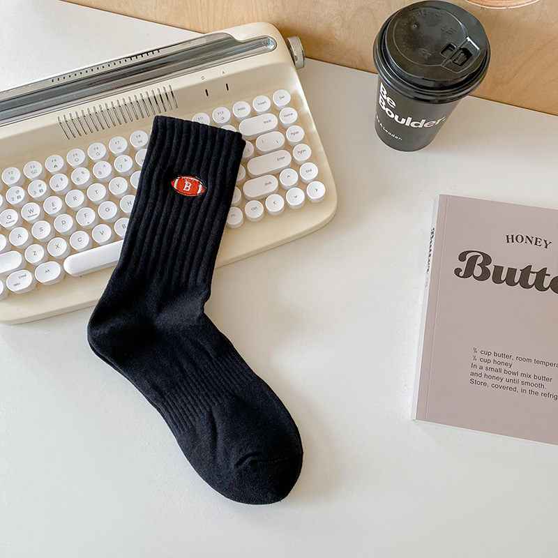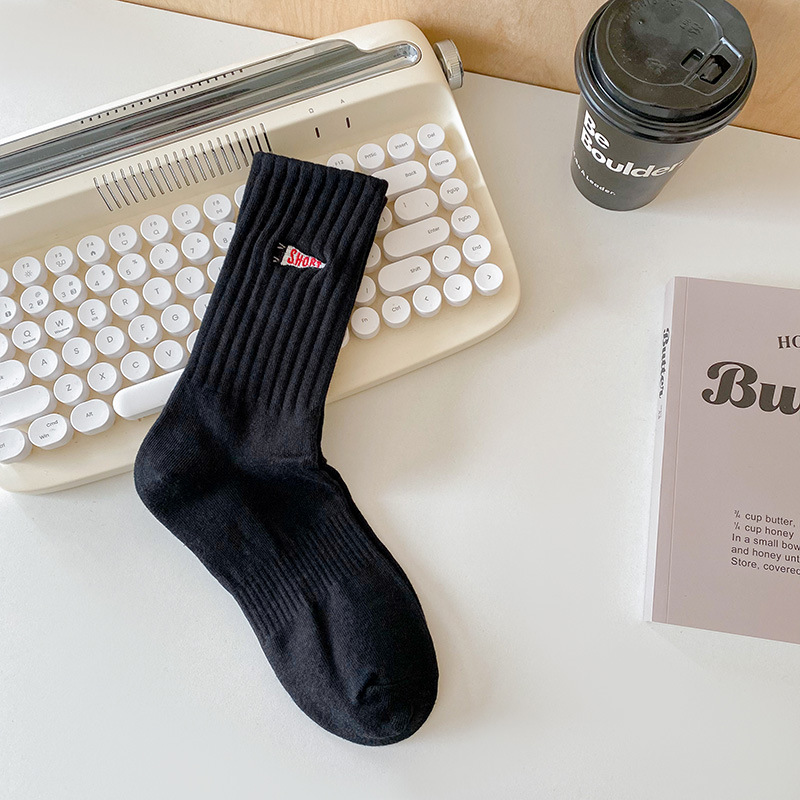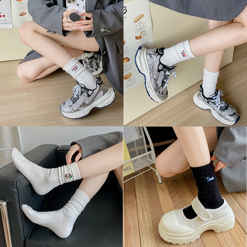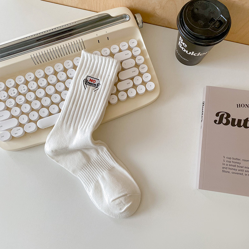 양말 남성용 및 여성용 면 흑백 만화 중간 길이 양말 커플 자수 학생 모든 경기 하이탑 스포츠 스타킹 유행스토어 가기