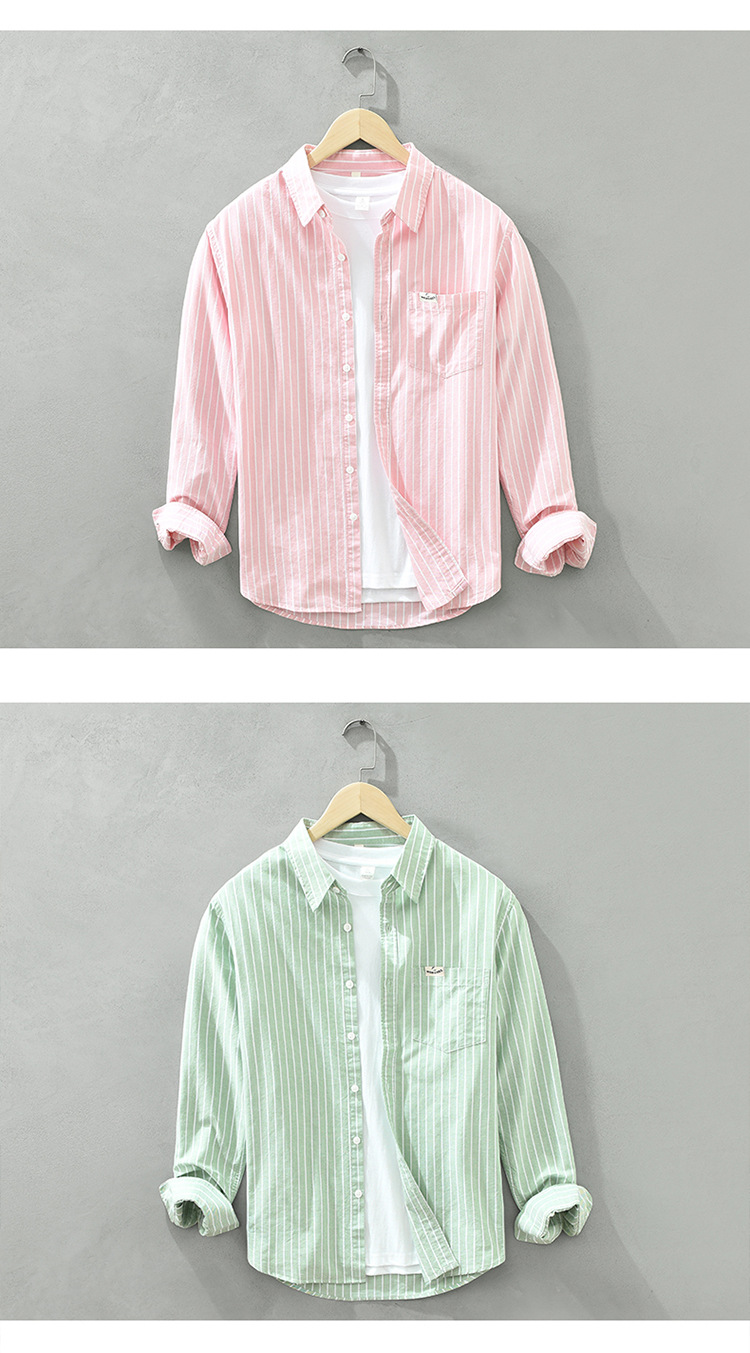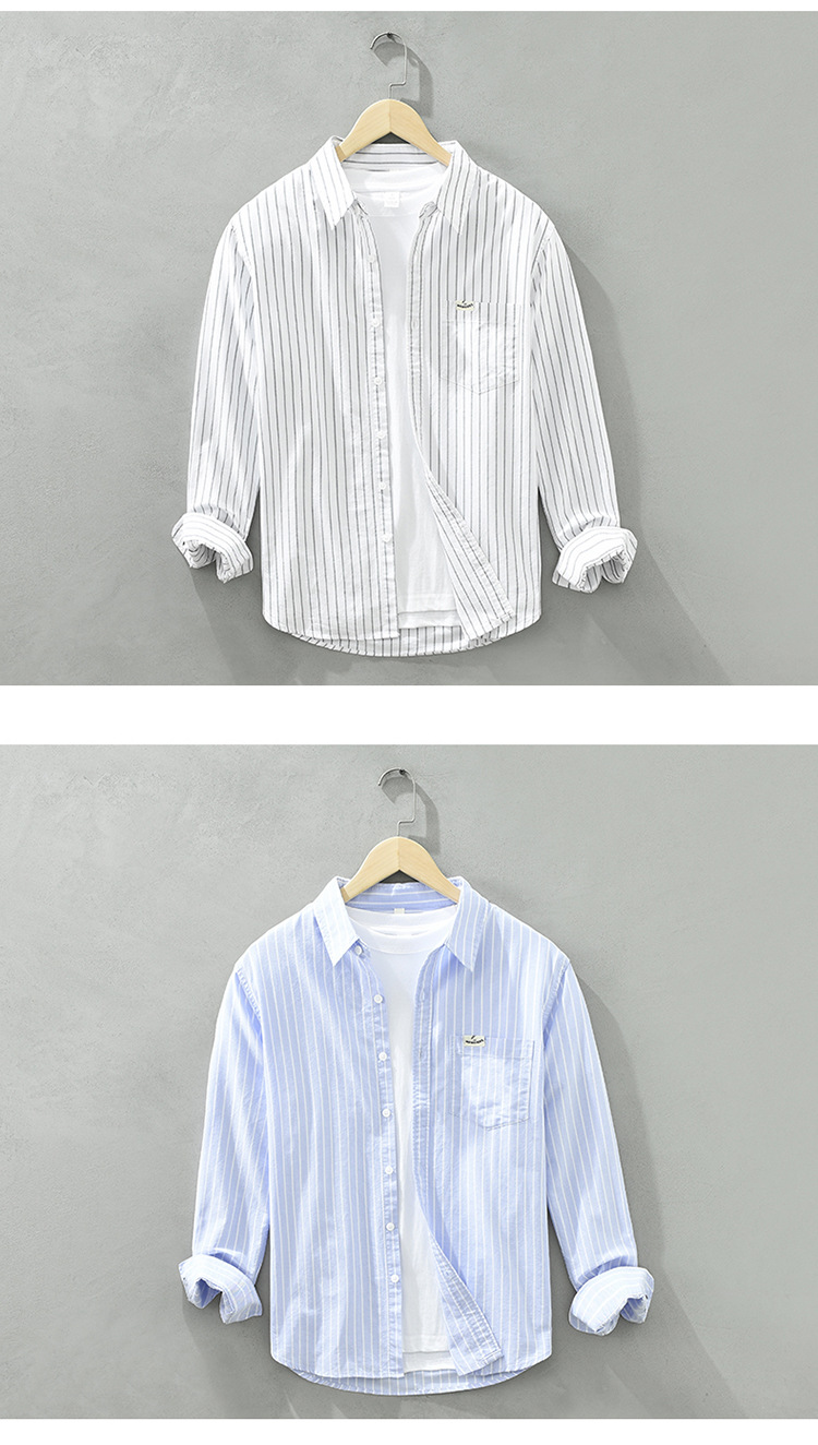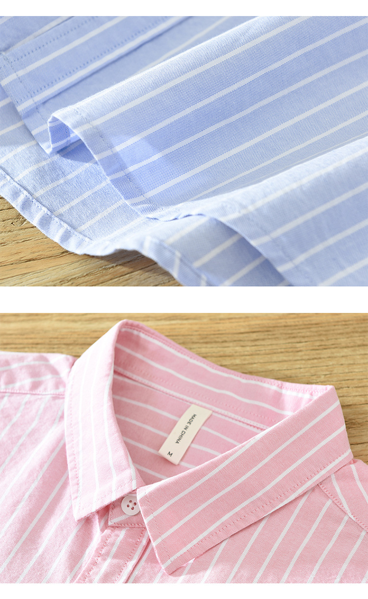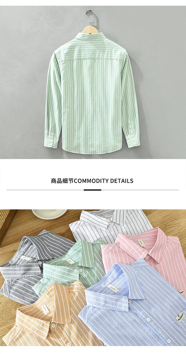 6628 한국 트렌드 스트라이프 옥스포드 긴팔 셔츠 남성의면 캐주얼 느슨한 스퀘어 칼라 셔츠 머리카락의 세대스토어 가기