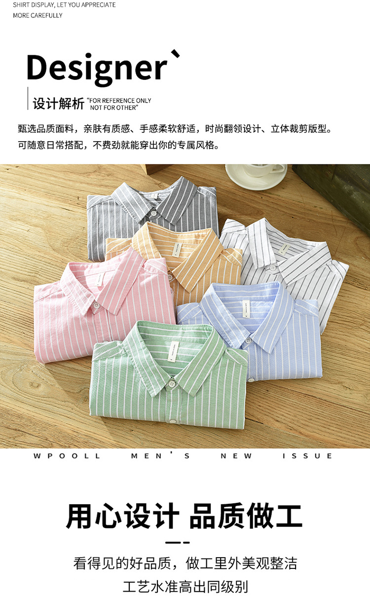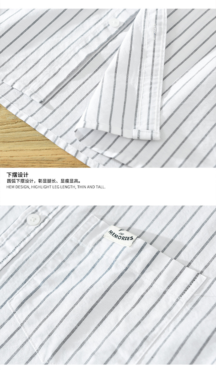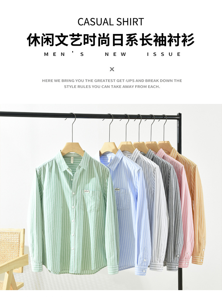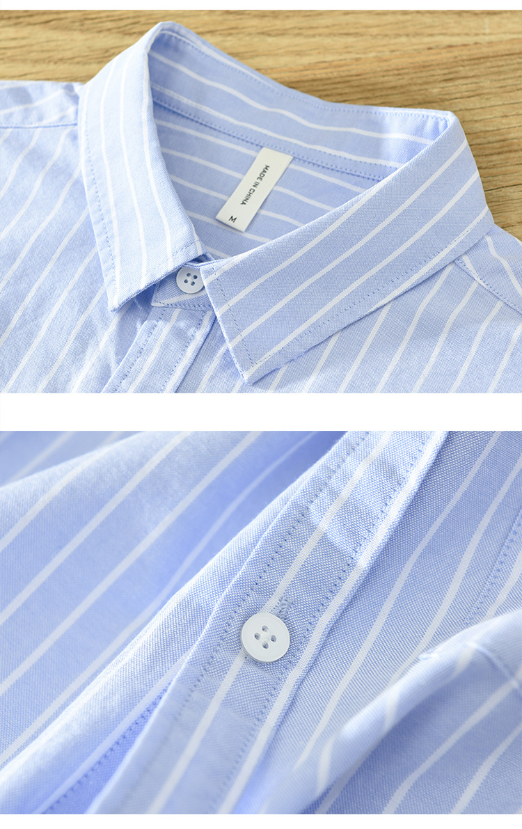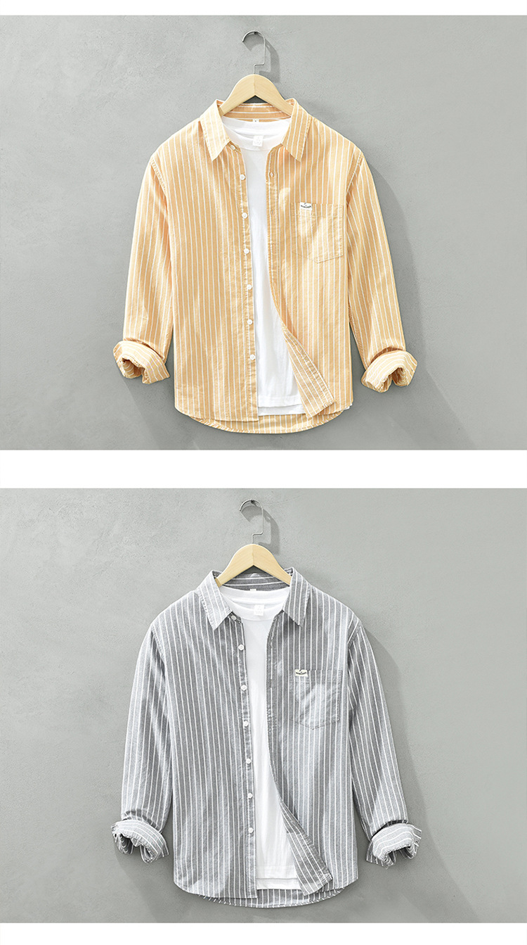 6628 한국 트렌드 스트라이프 옥스포드 긴팔 셔츠 남성의면 캐주얼 느슨한 스퀘어 칼라 셔츠 머리카락의 세대스토어 가기