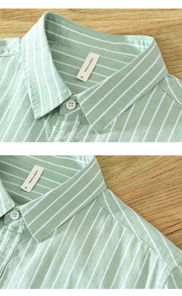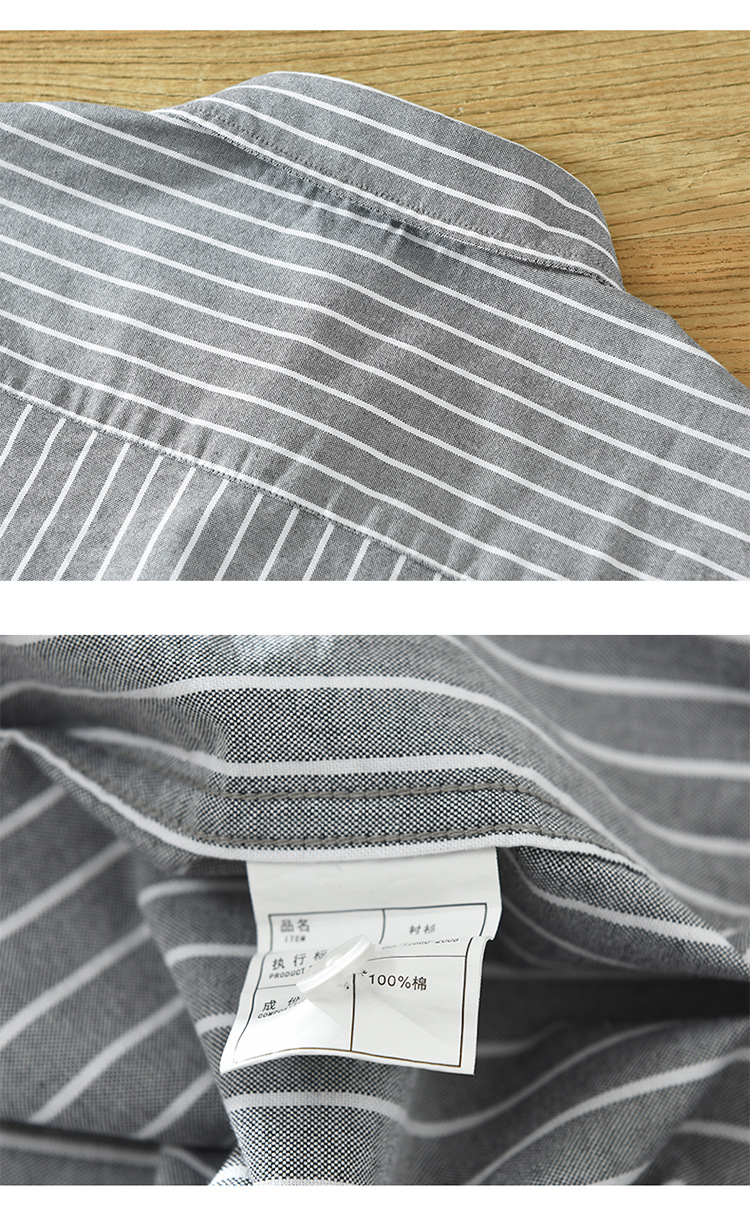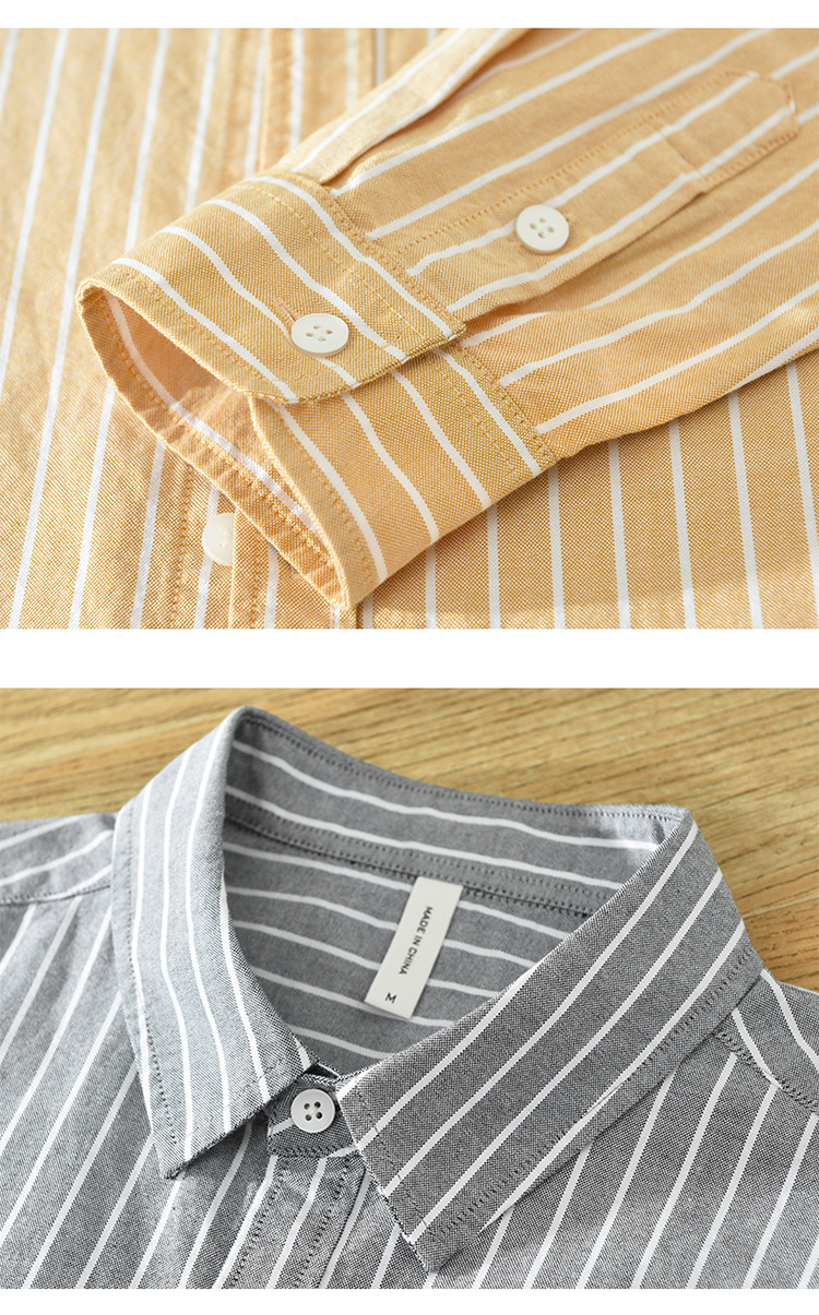 6628 한국 트렌드 스트라이프 옥스포드 긴팔 셔츠 남성의면 캐주얼 느슨한 스퀘어 칼라 셔츠 머리카락의 세대