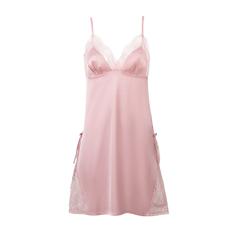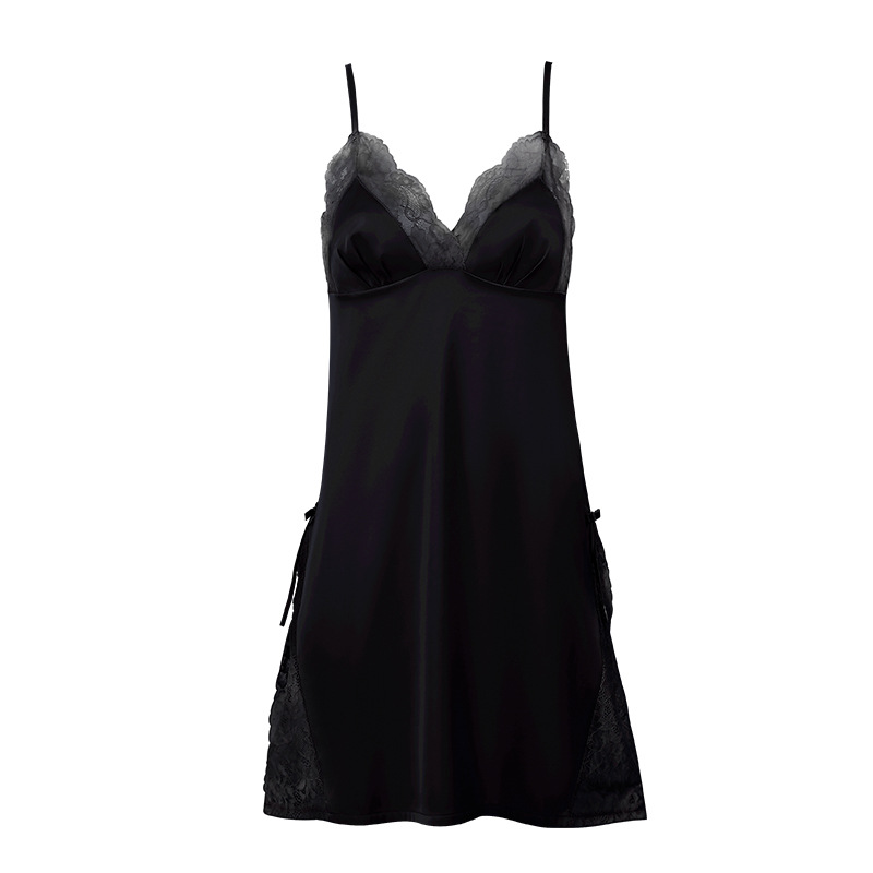 나이트 드레스 여성의 얇은 봄과 여름 섹시한 스트랩 파자마 인공 실크 백리스 레이스 에지 슬릿 스커트 민소매 홈스토어 가기