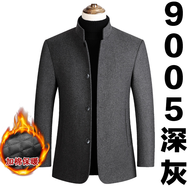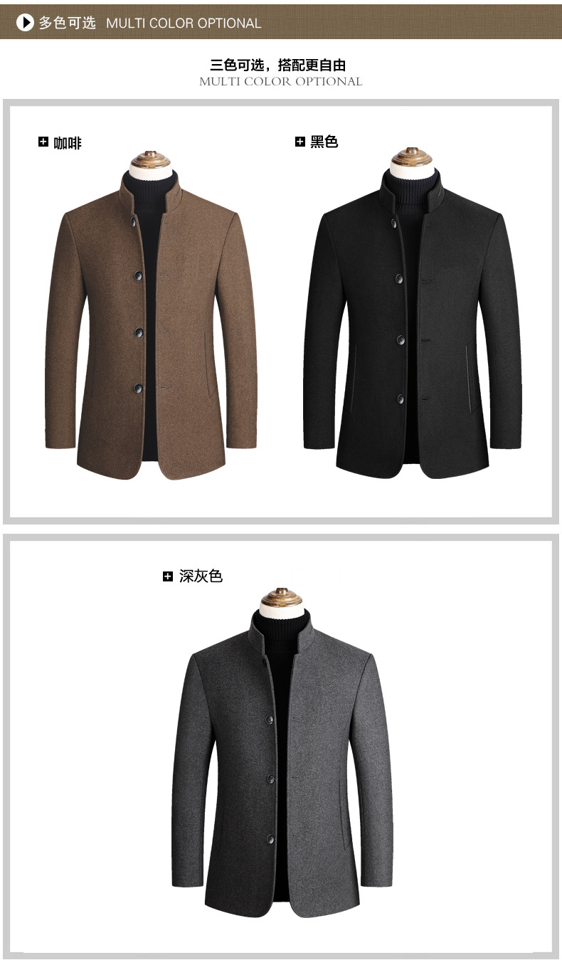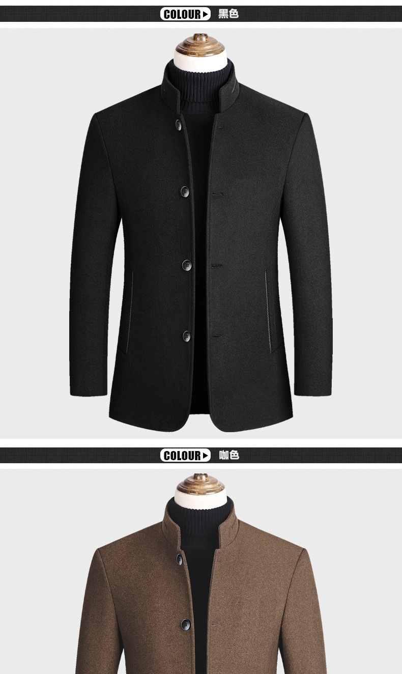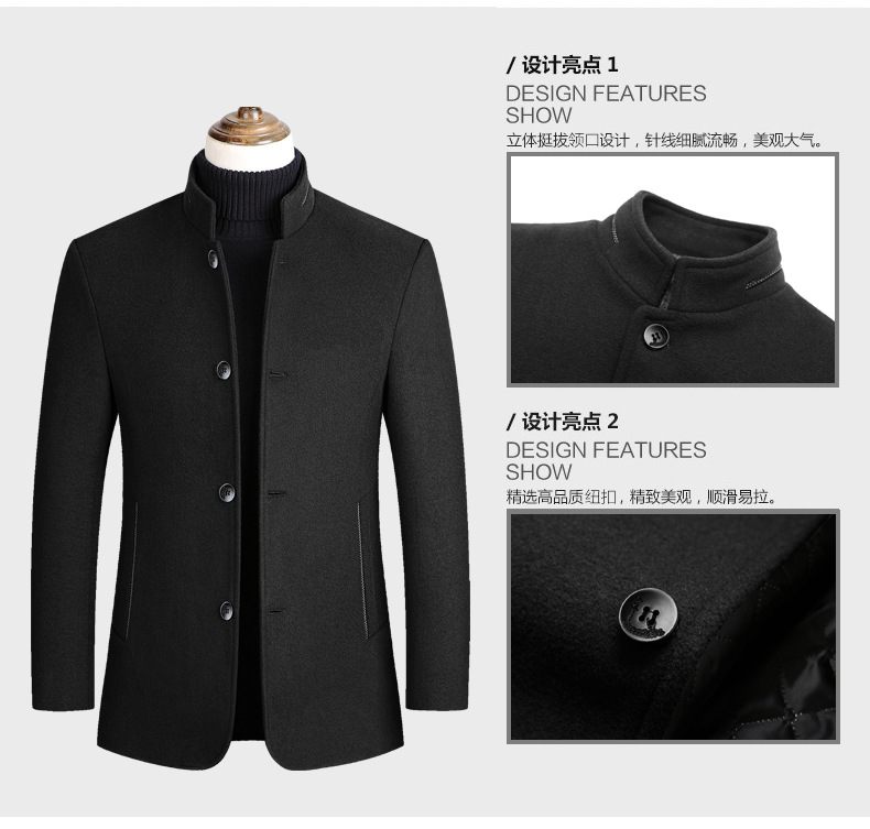 유럽 사이즈 가을 겨울 신상품, 솜 안감과 두꺼운 단추 장식의 스탠드 칼라 울 코트, 남성용 재킷 및 외투스토어 가기