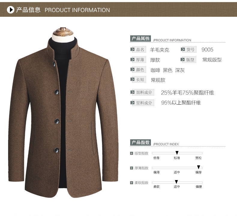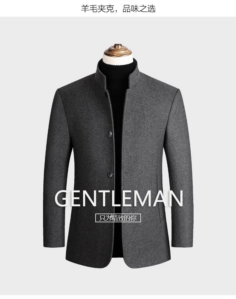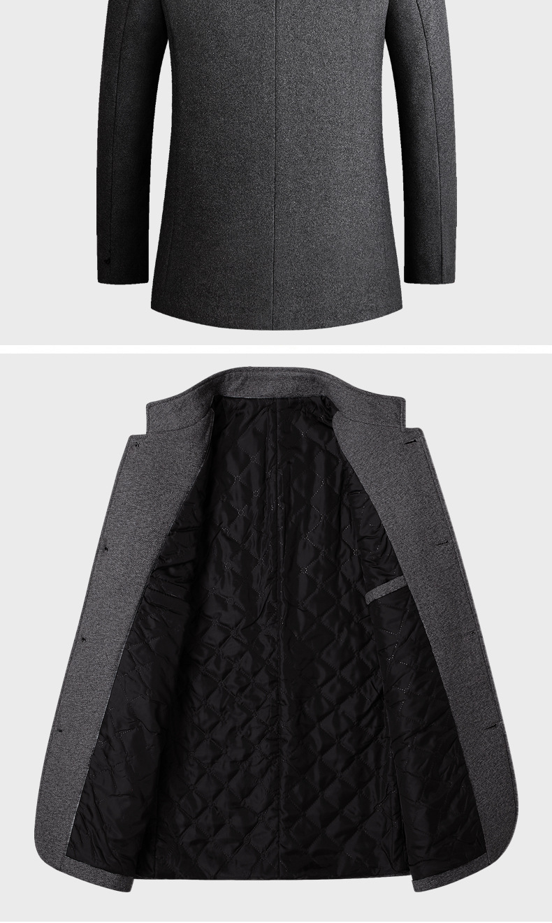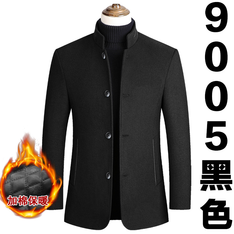 유럽 사이즈 가을 겨울 신상품, 솜 안감과 두꺼운 단추 장식의 스탠드 칼라 울 코트, 남성용 재킷 및 외투스토어 가기