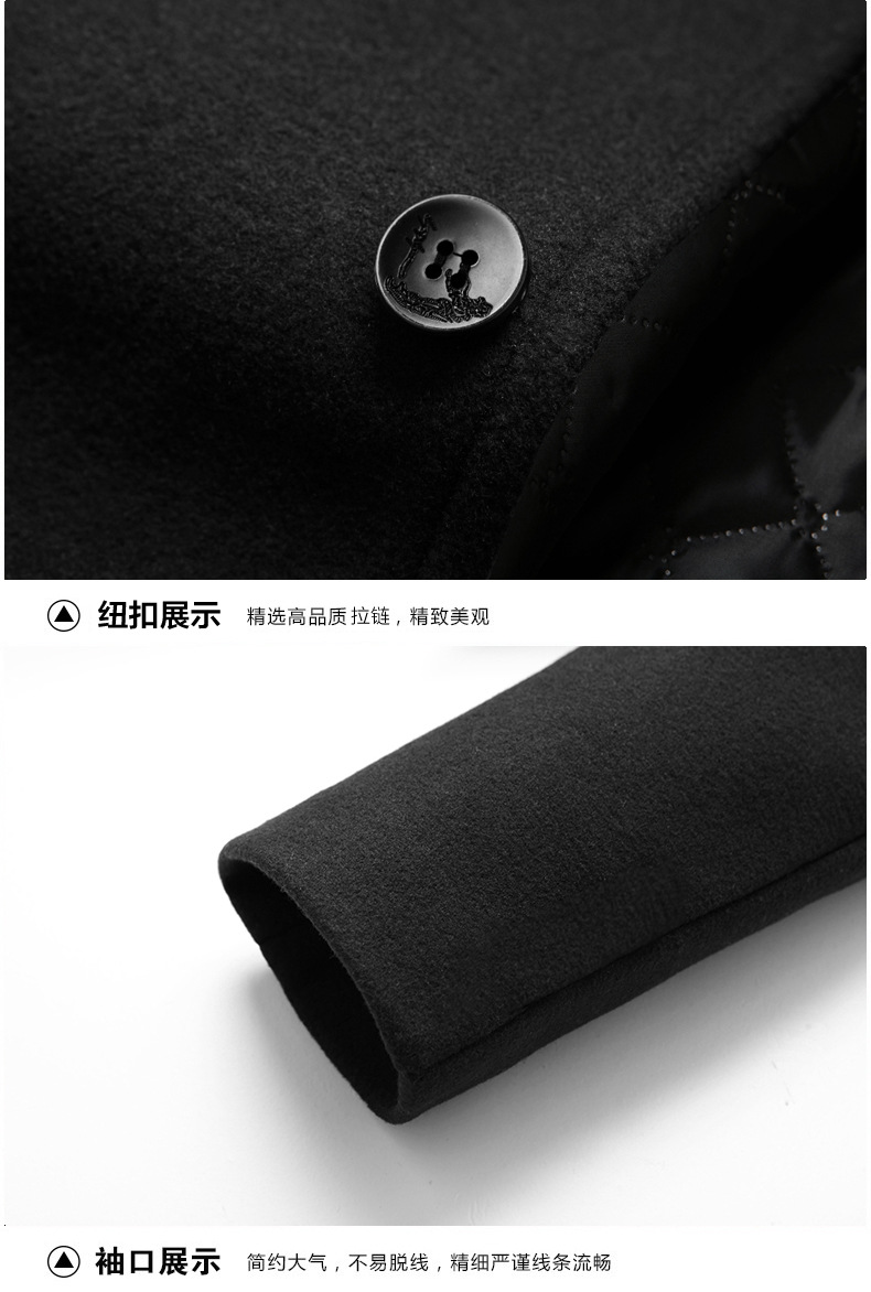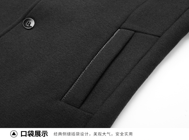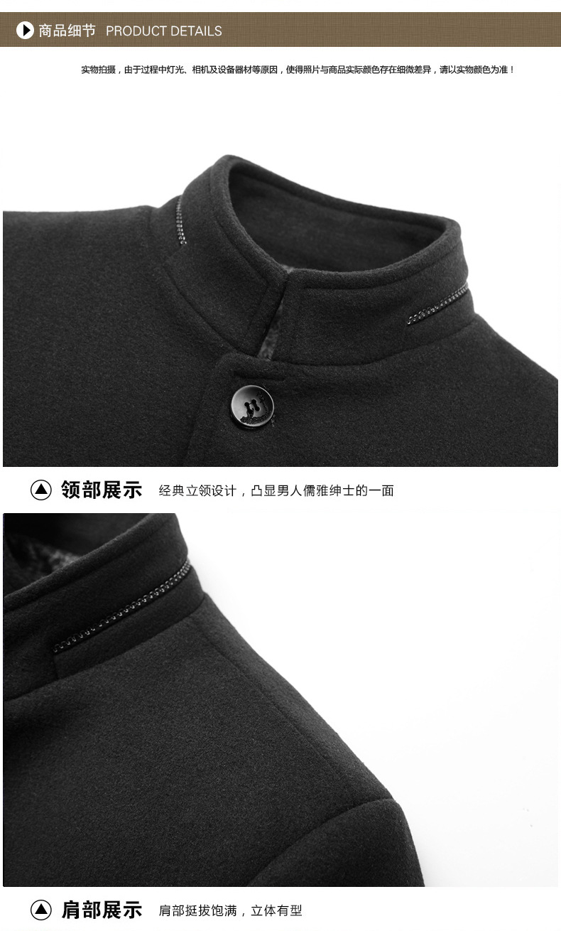유럽 사이즈 가을 겨울 신상품, 솜 안감과 두꺼운 단추 장식의 스탠드 칼라 울 코트, 남성용 재킷 및 외투