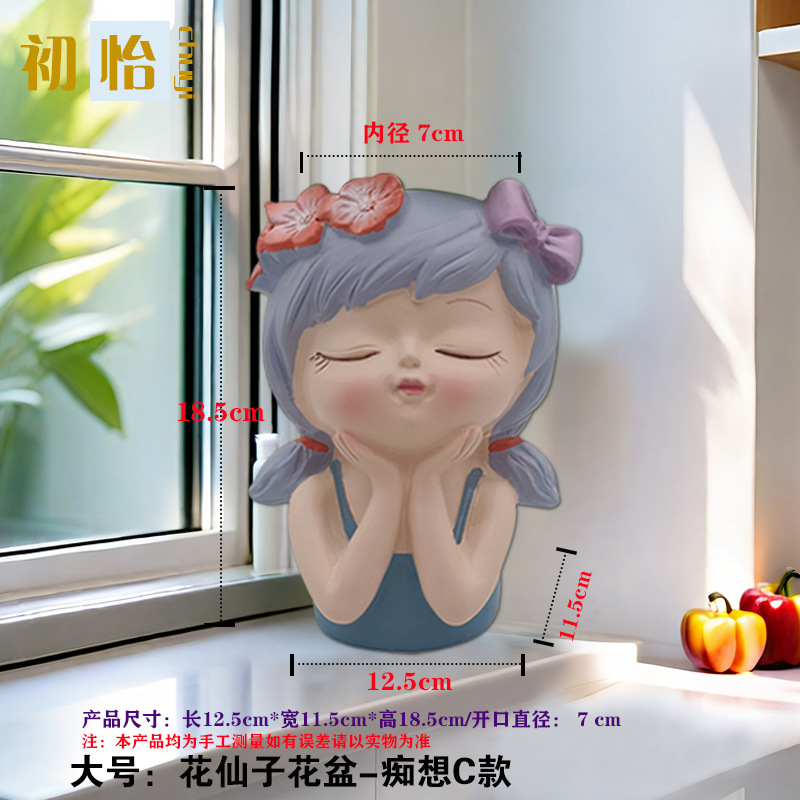 요정 작은 꽃 냄비 바탕 화면 북유럽 스타일 시뮬레이션 바탕 화면 귀여운 만화 수지 다육 꽃 냄비 꽃 냄비 장식품스토어 가기