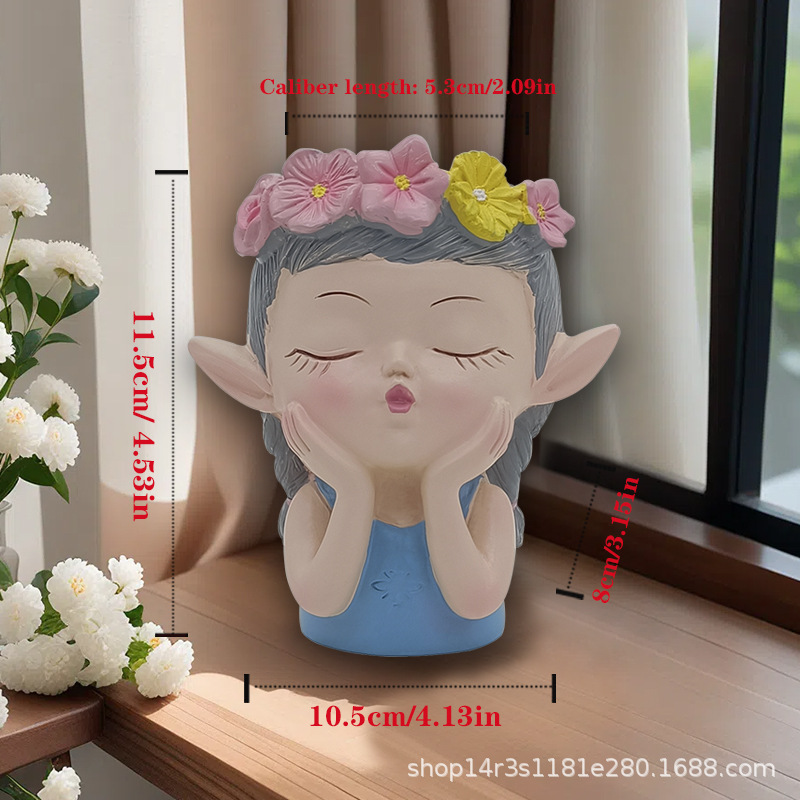 요정 작은 꽃 냄비 바탕 화면 북유럽 스타일 시뮬레이션 바탕 화면 귀여운 만화 수지 다육 꽃 냄비 꽃 냄비 장식품