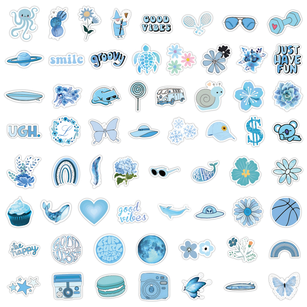60 개 VSCO 블루 작은 신선한 낙서 스티커 자동차 트렁크 물 컵 노트북 방수 스티커 도매