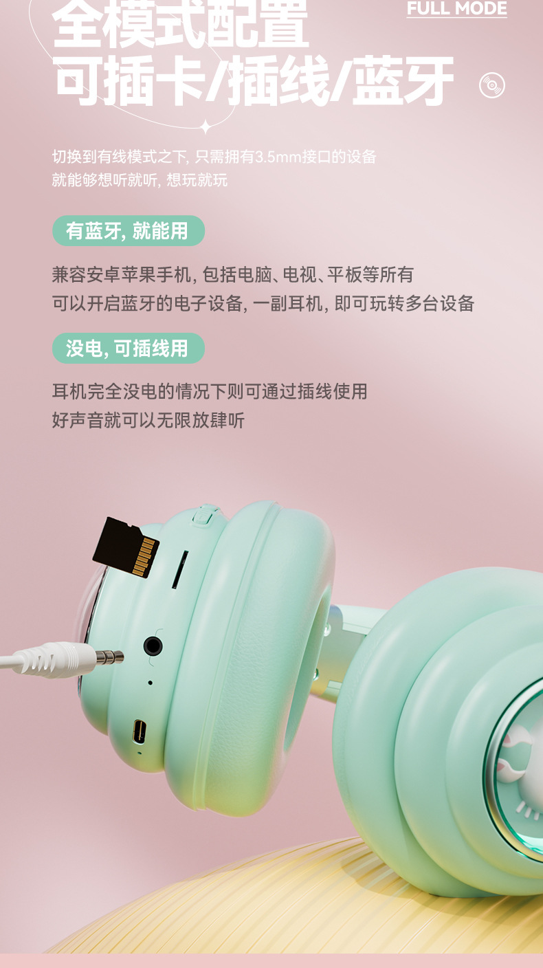 국경 간 폭발 헤드셋 블루투스 헤드셋 무선 발광 귀여운 슈퍼 긴 지구력 서브 우퍼 스포츠 E 스포츠 헤드셋