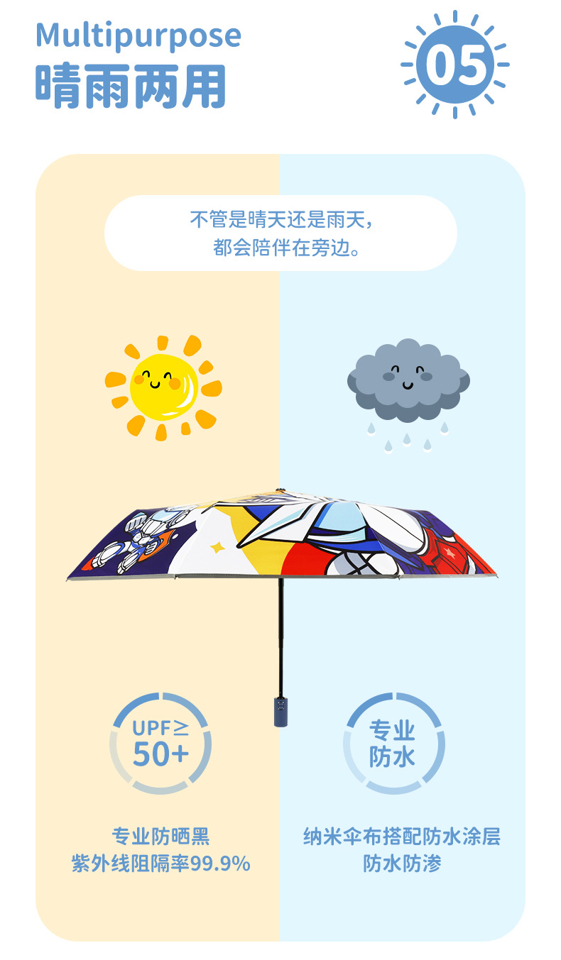 어린이 우산 초등 학생을위한 소년과 소녀를위한 완전 자동 반동 방지 이중 목적 접이식 우산