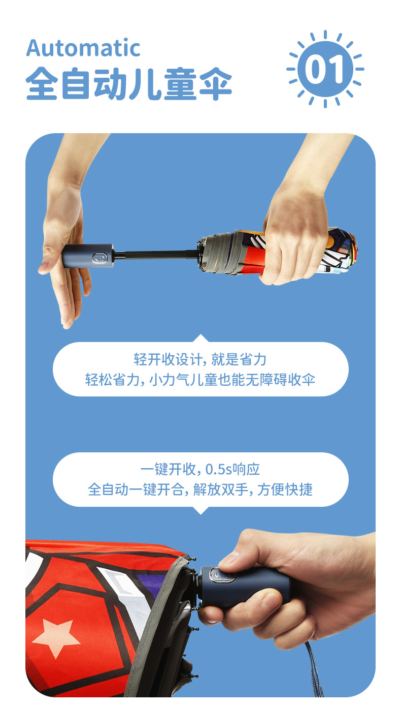 어린이 우산 초등 학생을위한 소년과 소녀를위한 완전 자동 반동 방지 이중 목적 접이식 우산스토어 가기