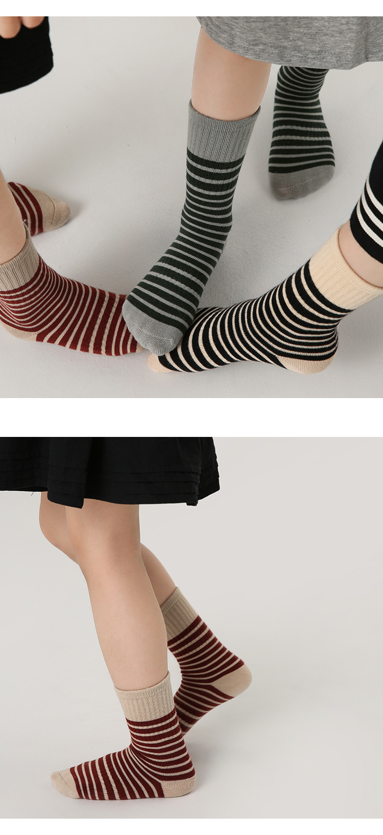 1511 아동용 양말 도매 25 봄 가을 신상 심플 스트라이프 아기 중목 양말 면 무봉제 남아 여아 양말