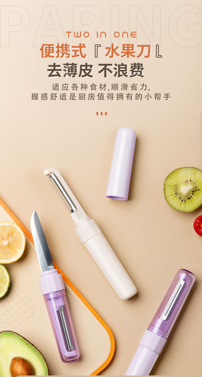 크리 에이 티브 과일 칼 필링 나이프 2-in -1 가정용 주방 다기능 과일 칼 스테인레스 스틸 과일 및 야채 필링 나이프