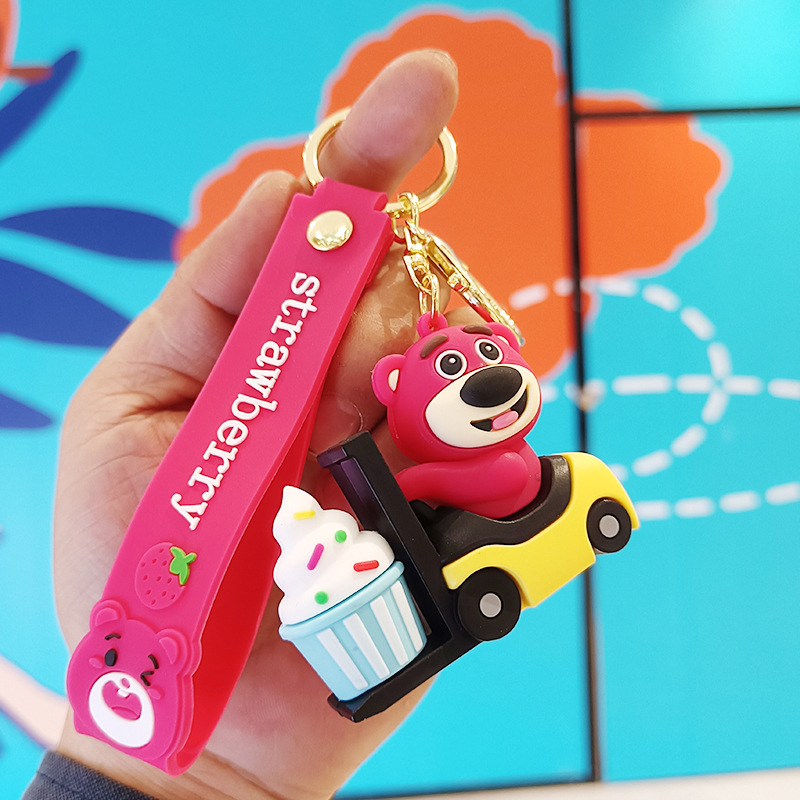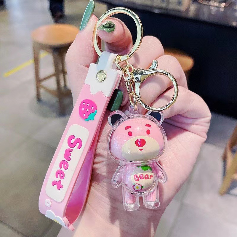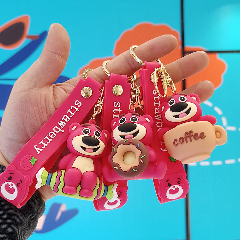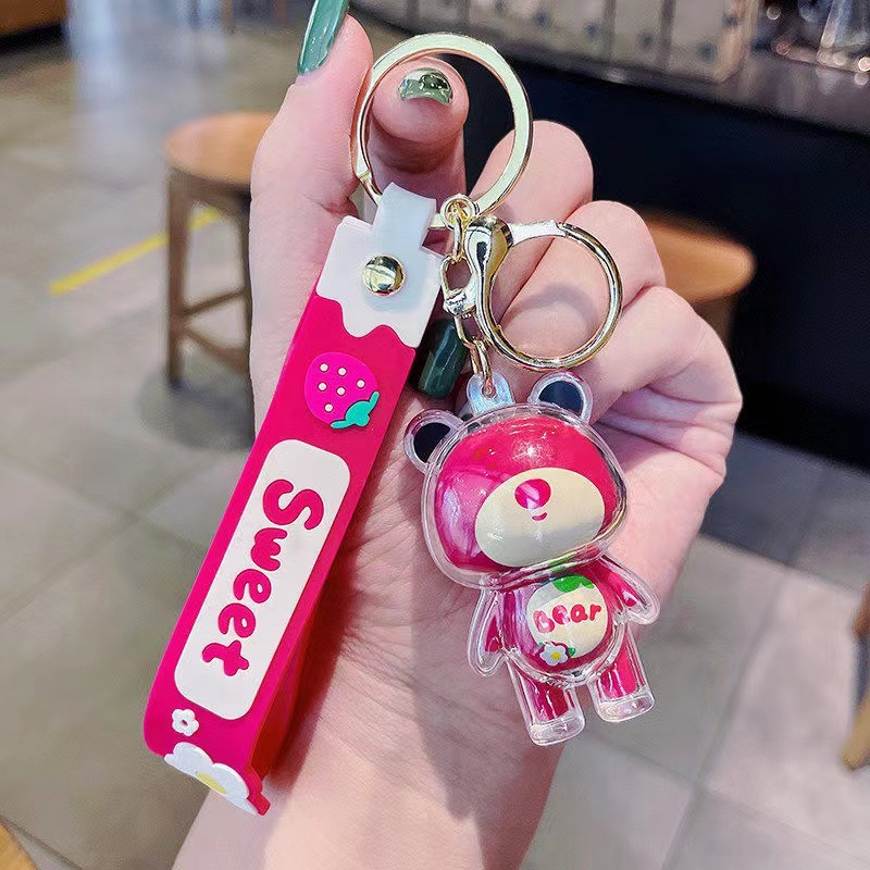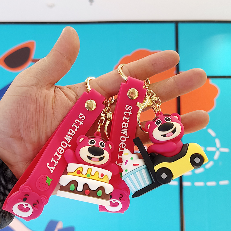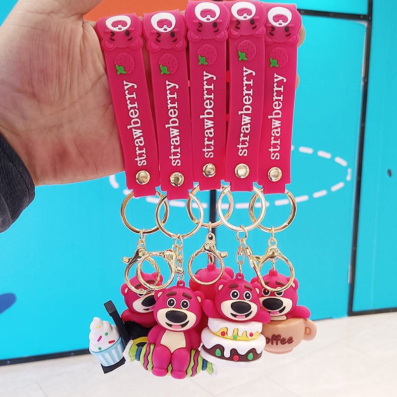 폭발 만화 귀여운 딸기 곰 인형 소녀 심장 창조적 인 자동차 열쇠 고리 가방 펜던트 커플 선물 도매스토어 가기
