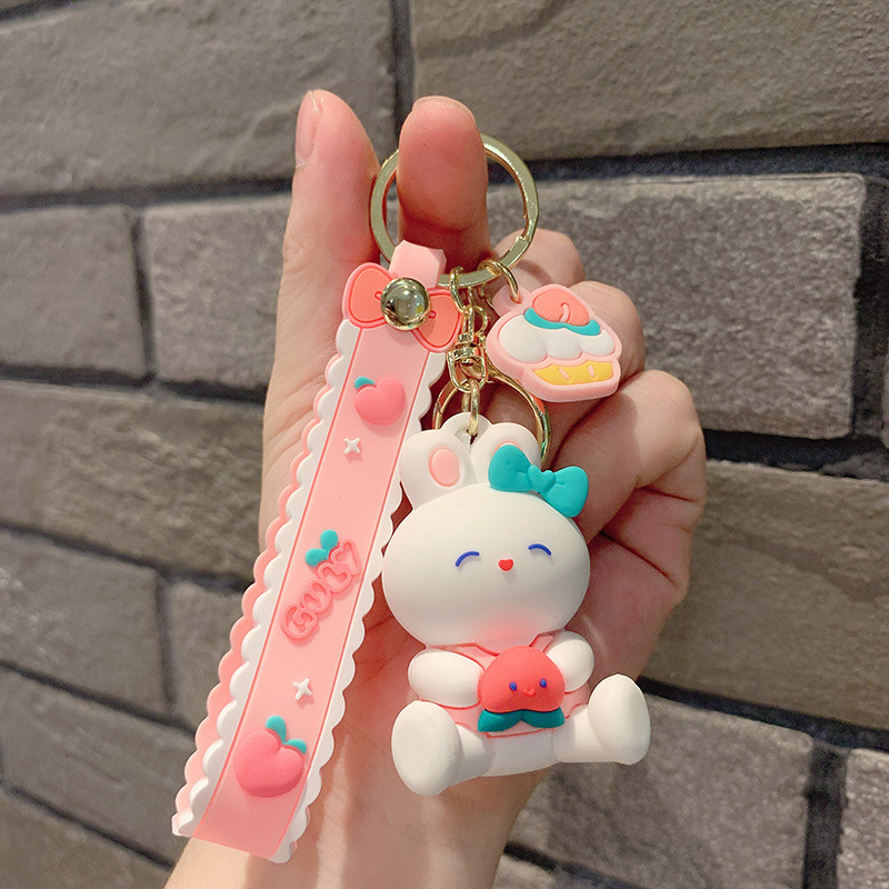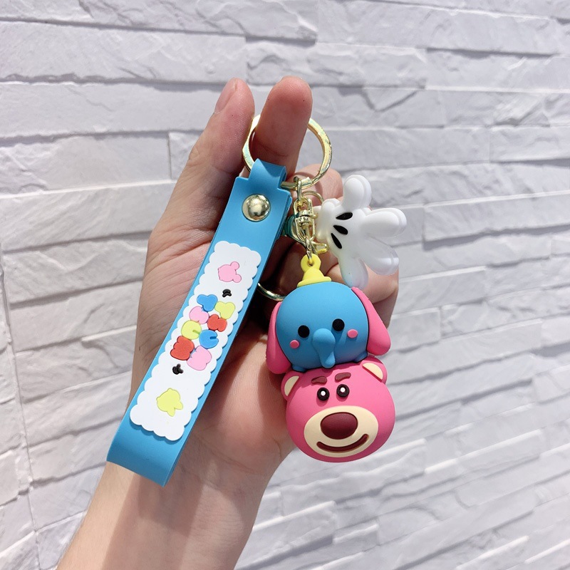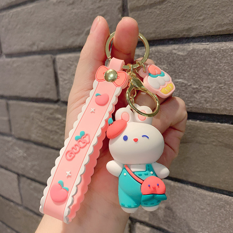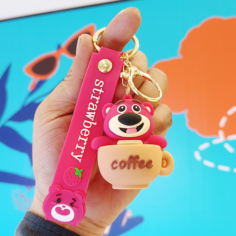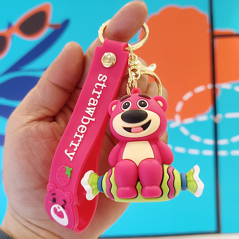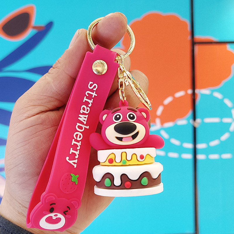 폭발 만화 귀여운 딸기 곰 인형 소녀 심장 창조적 인 자동차 열쇠 고리 가방 펜던트 커플 선물 도매스토어 가기