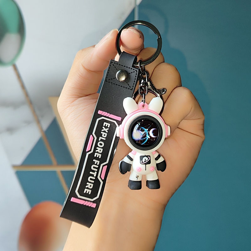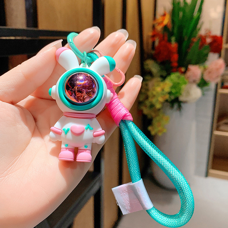 • 핑크 블루 스페이스 토끼 버블 가죽 로프-핑크