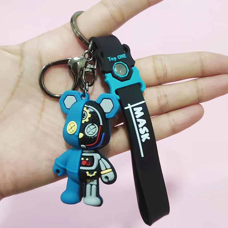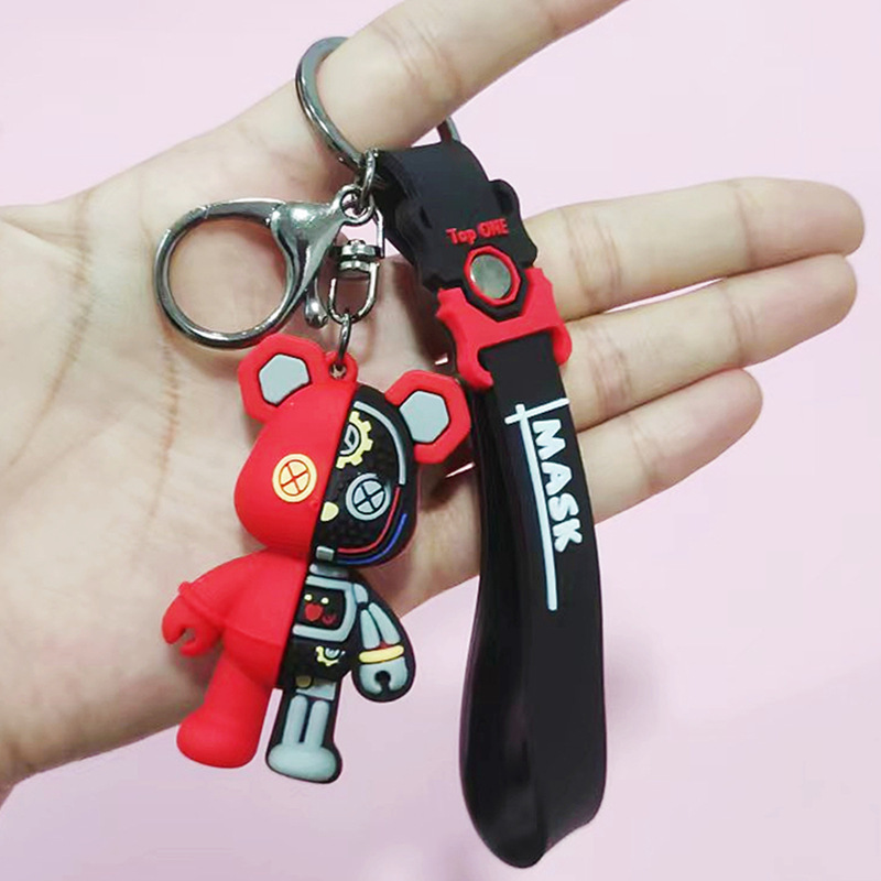 폭발 만화 귀여운 딸기 곰 인형 소녀 심장 창조적 인 자동차 열쇠 고리 가방 펜던트 커플 선물 도매