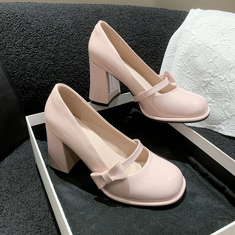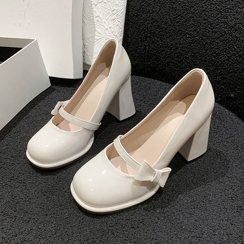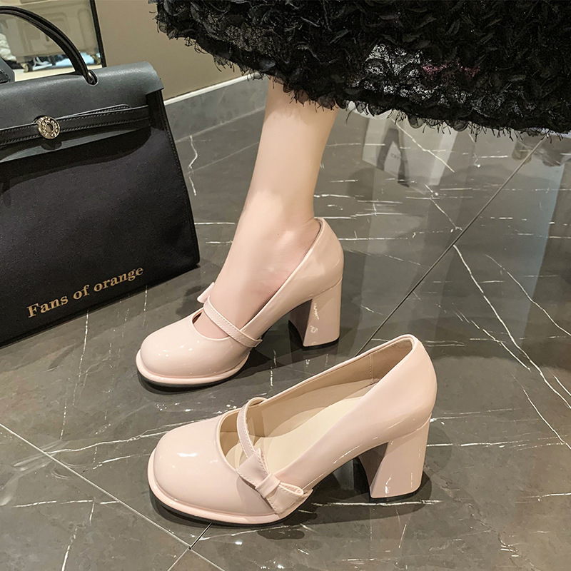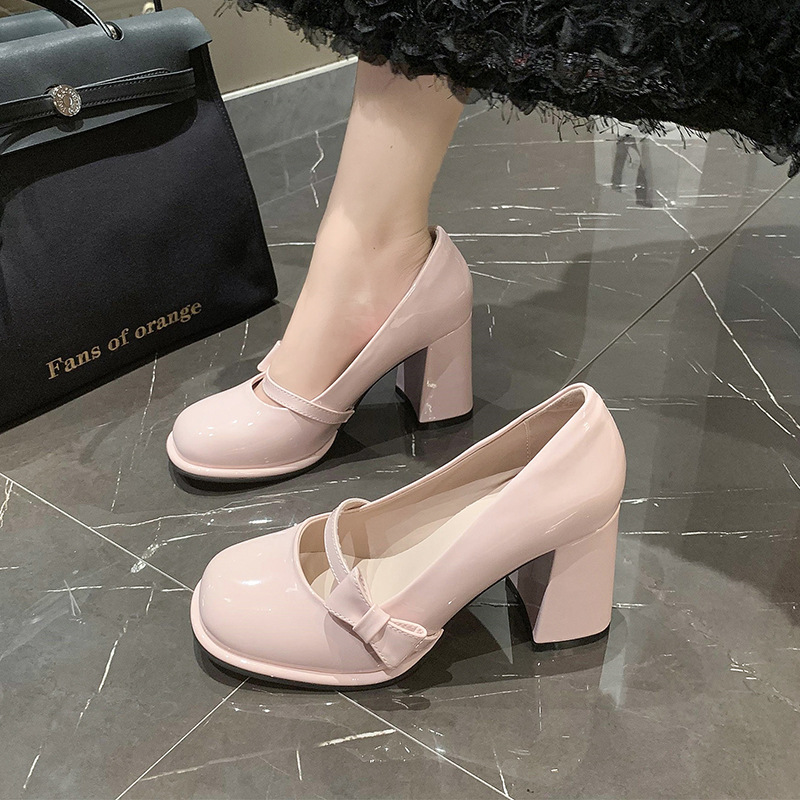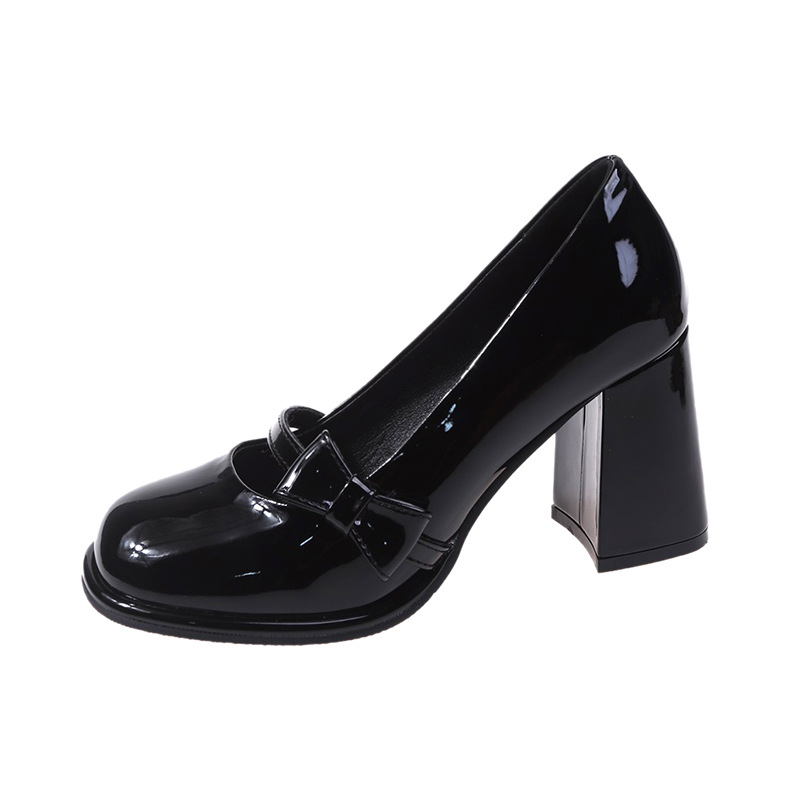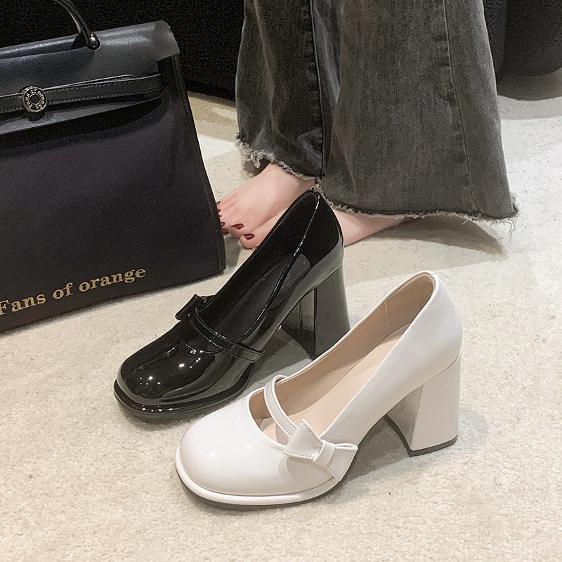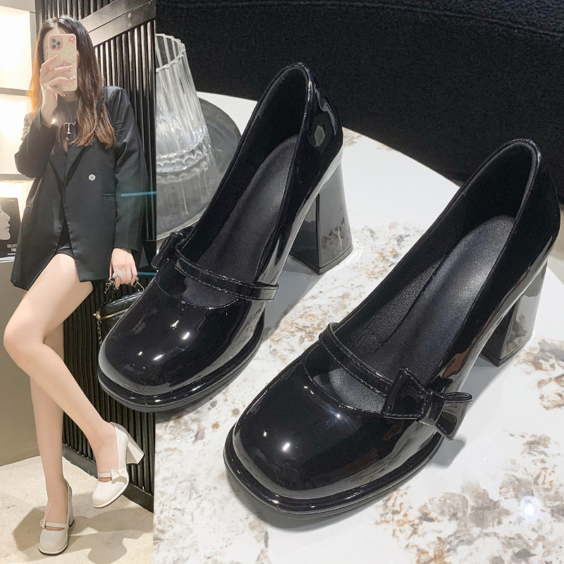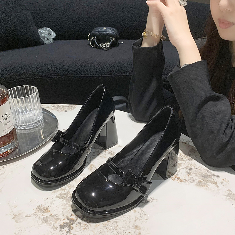 하이힐 여성용 2023 새로운 스타일 두꺼운 굽 메리 제인 신발 일본 JK 유니폼 가죽 신발 활 두꺼운 굽 유행 단층 신발