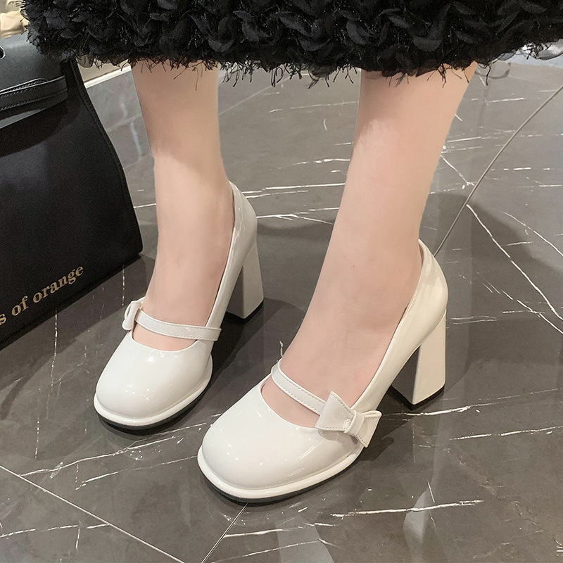 하이힐 여성용 2023 새로운 스타일 두꺼운 굽 메리 제인 신발 일본 JK 유니폼 가죽 신발 활 두꺼운 굽 유행 단층 신발스토어 가기