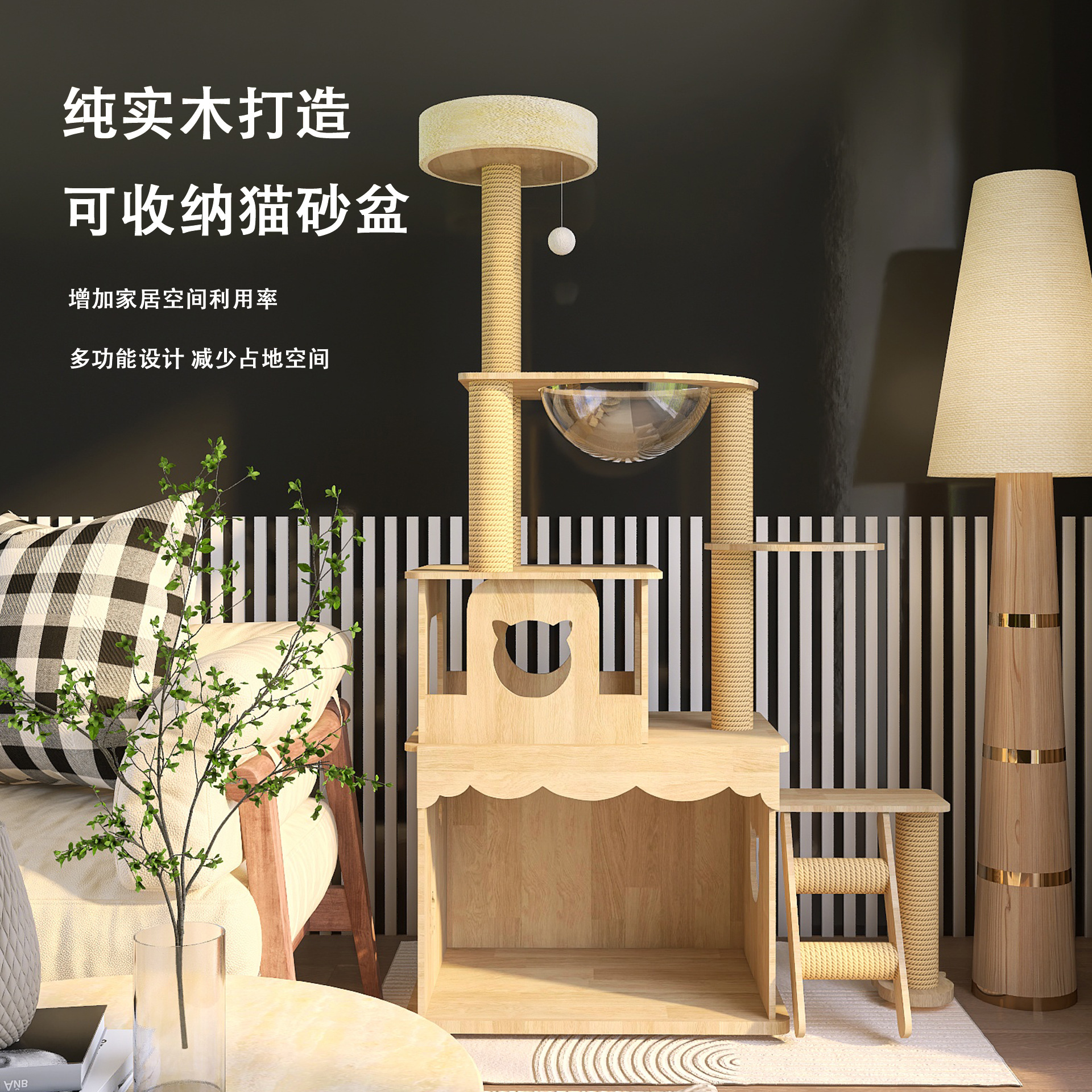 폭발성 오크 솔리드 우드 스토리지 대형 아파트 고양이 케이지 통합 수직 내마모성 고양이 등반 랙
