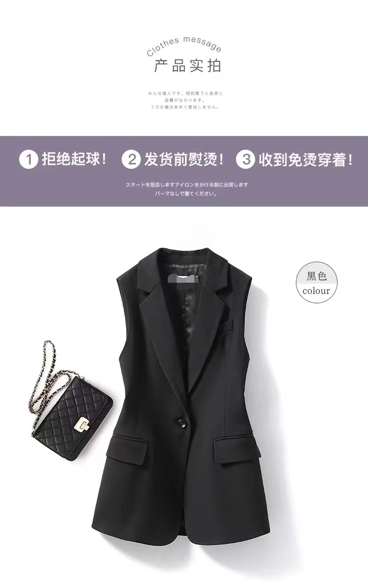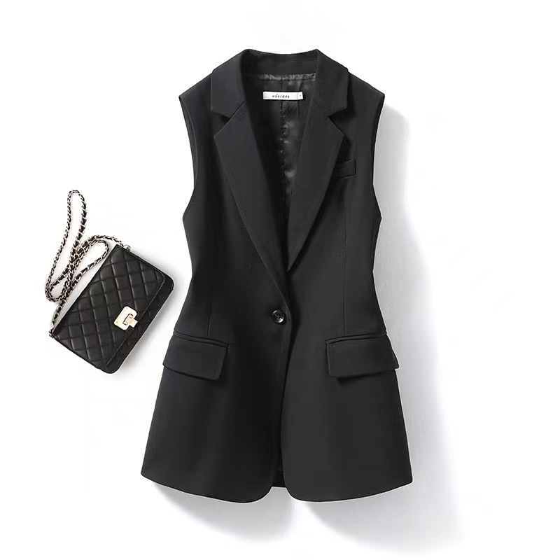 블랙 정장 조끼 여성용 코트 2월~8월 봄옷 슬릿 디자인 허리 조임 슬림핏 외출용 정장 조끼 패션스토어 가기