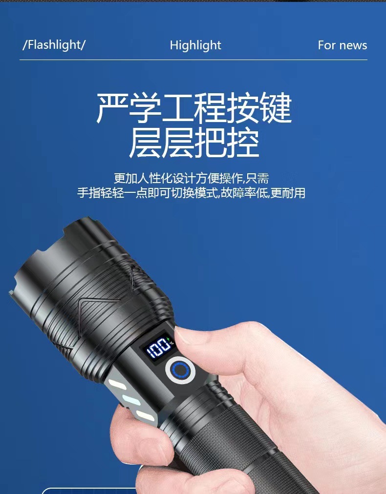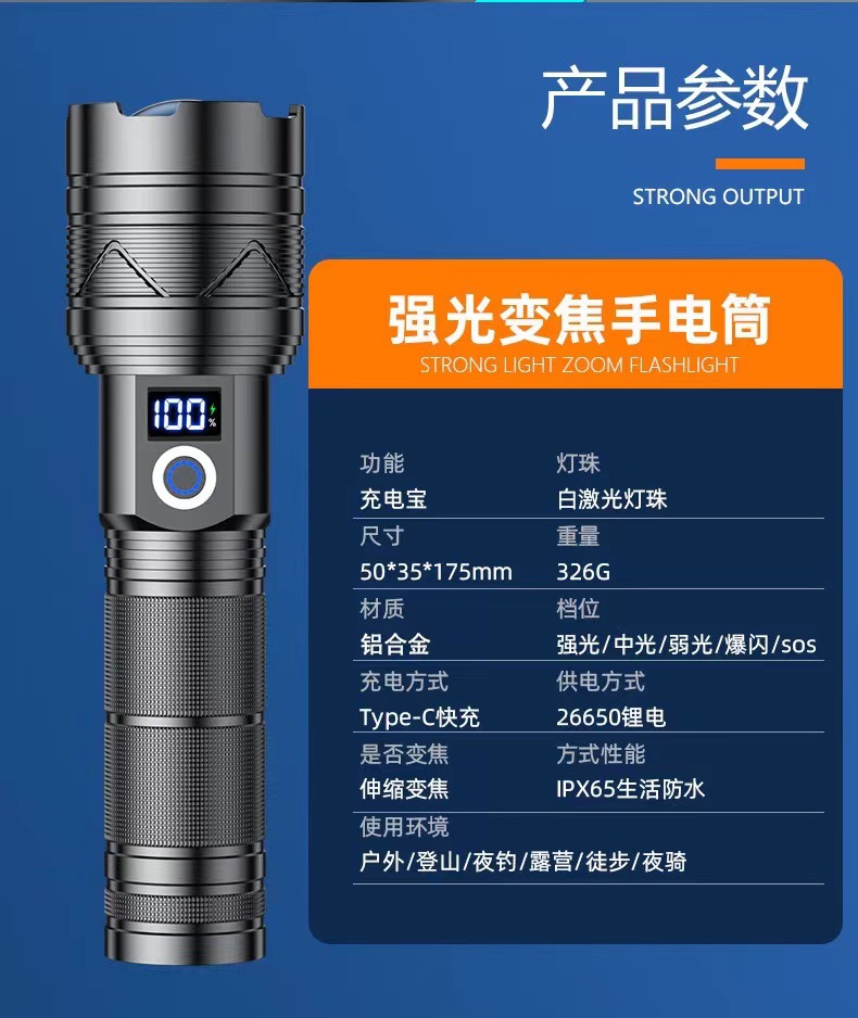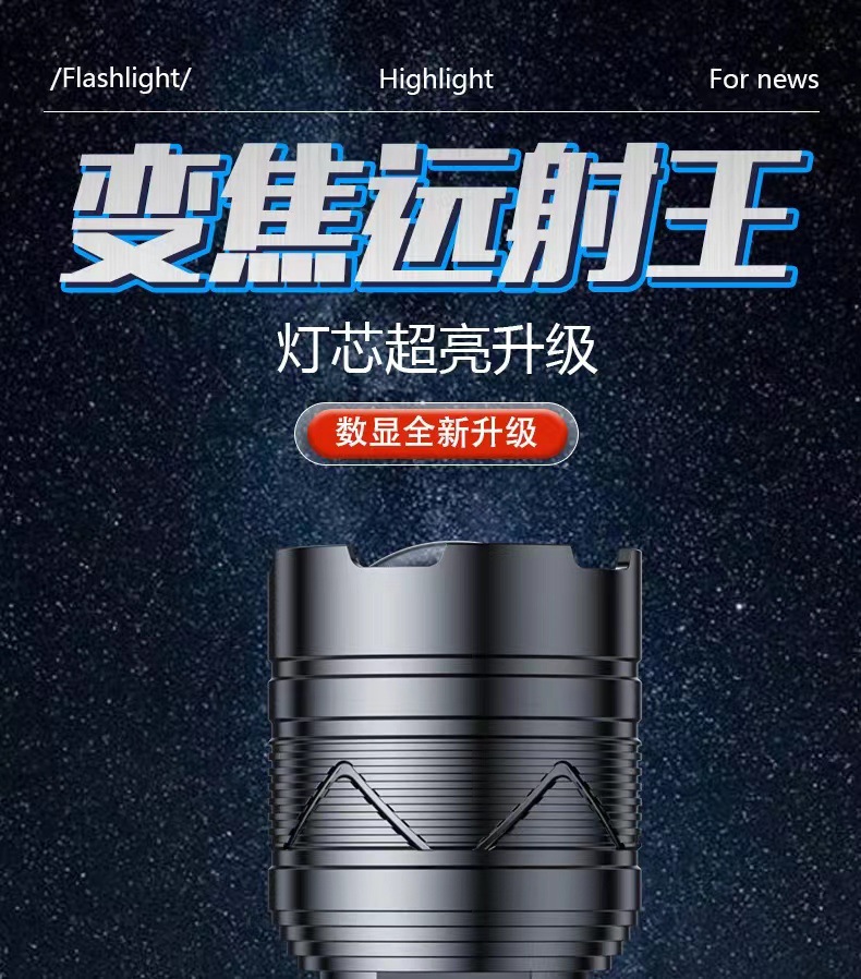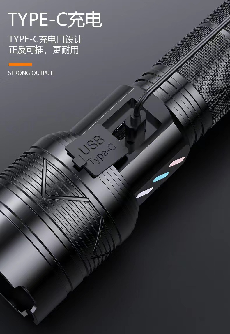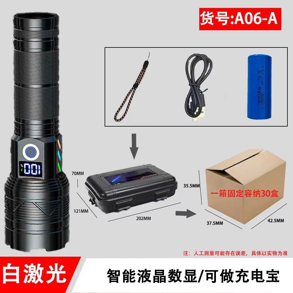 국경 간 흰색 레이저 손전등 강한 조명 충전 야외 초경량 장거리 줌 손전등 긴 내구성 높은 파워