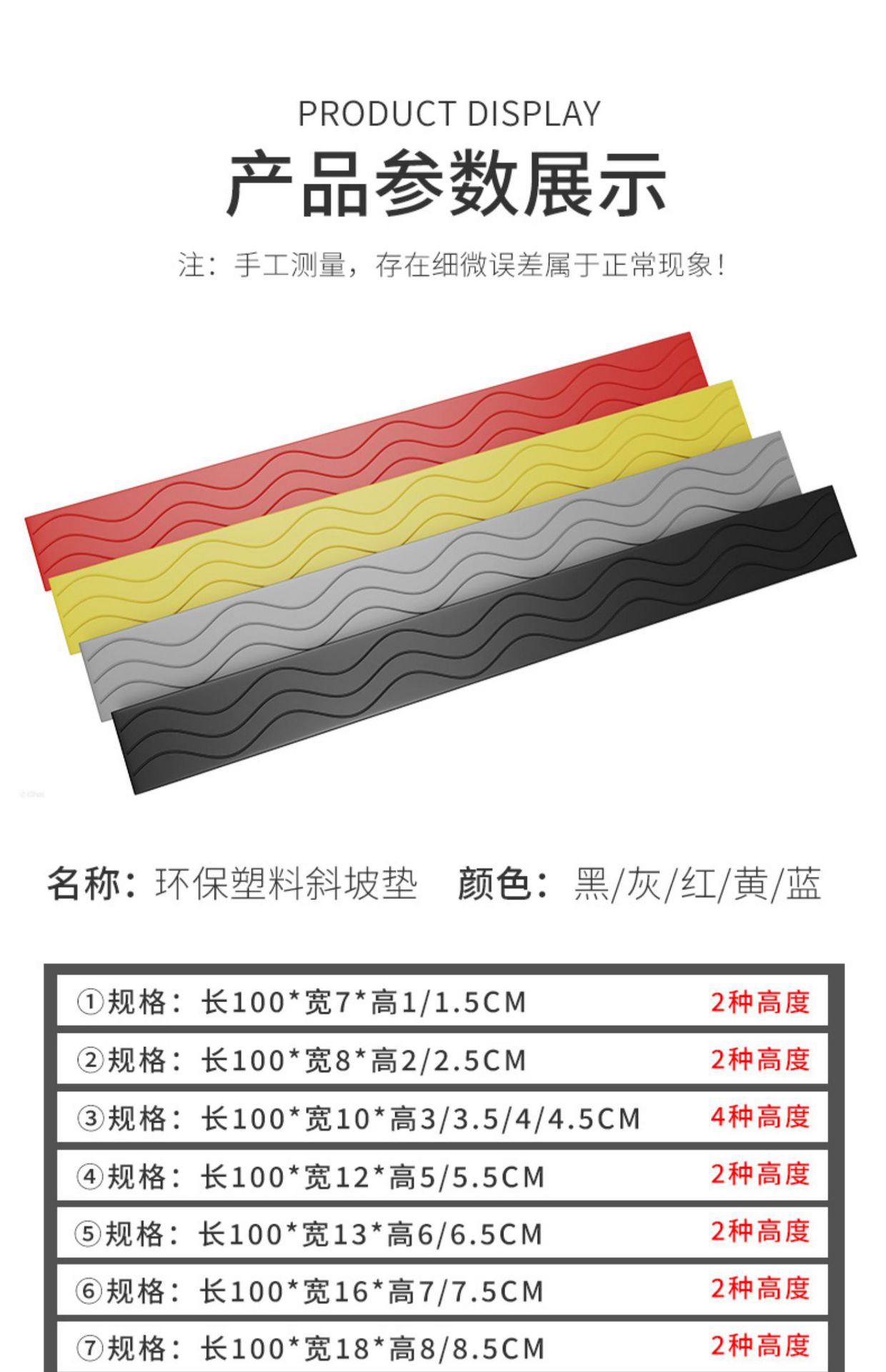 6.下单前请测量需要放垫子的台阶的高度 (如多级台阶还需测量台阶的宽度),根据台阶尺寸来适配相应尺寸规格的垫子,如由于买家原因导致尺寸差的过大不能用,退换货来回运费买家承担!