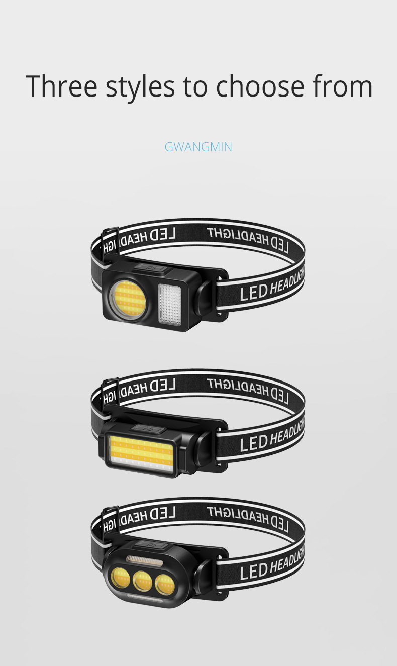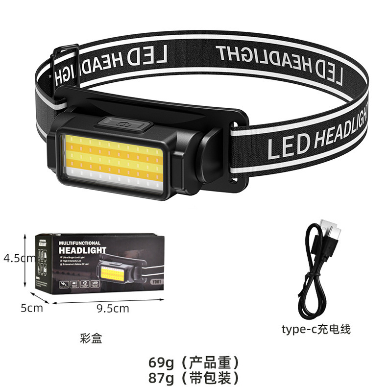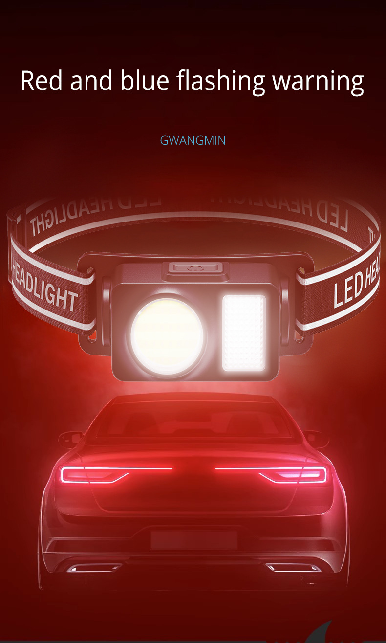 신강력 헤드라이트 COB 미니 다기능 낚시 램프 옥외 휴대용 LED 적색등 경고 헤드마운트 손전등