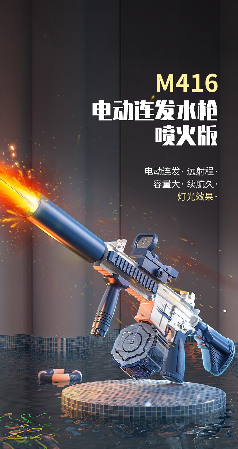 새로운 화재 호흡 2 세대 M416 물총 대용량 전기 파열 야외 물 소년 선물 어린이 장난감스토어 가기