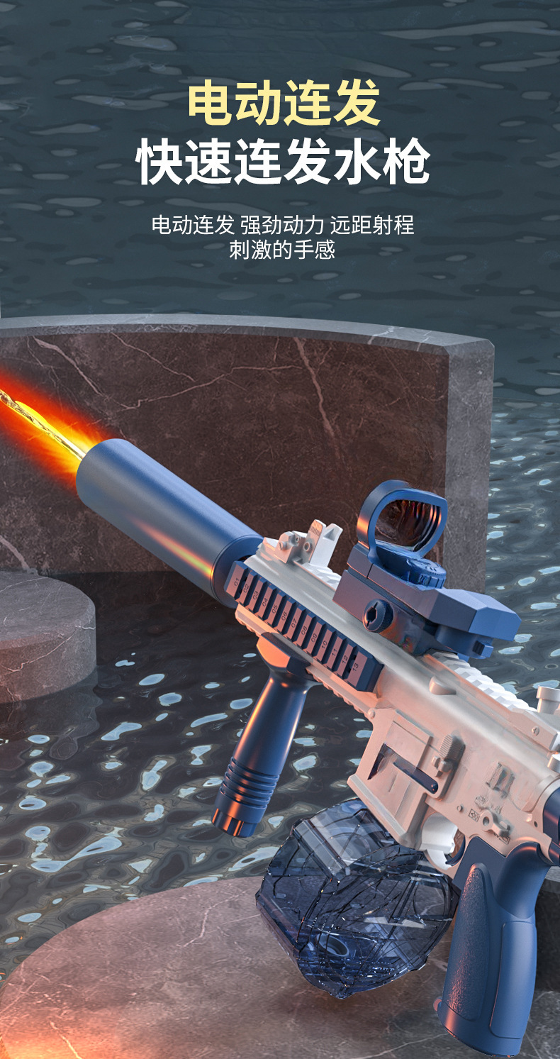 새로운 화재 호흡 2 세대 M416 물총 대용량 전기 파열 야외 물 소년 선물 어린이 장난감