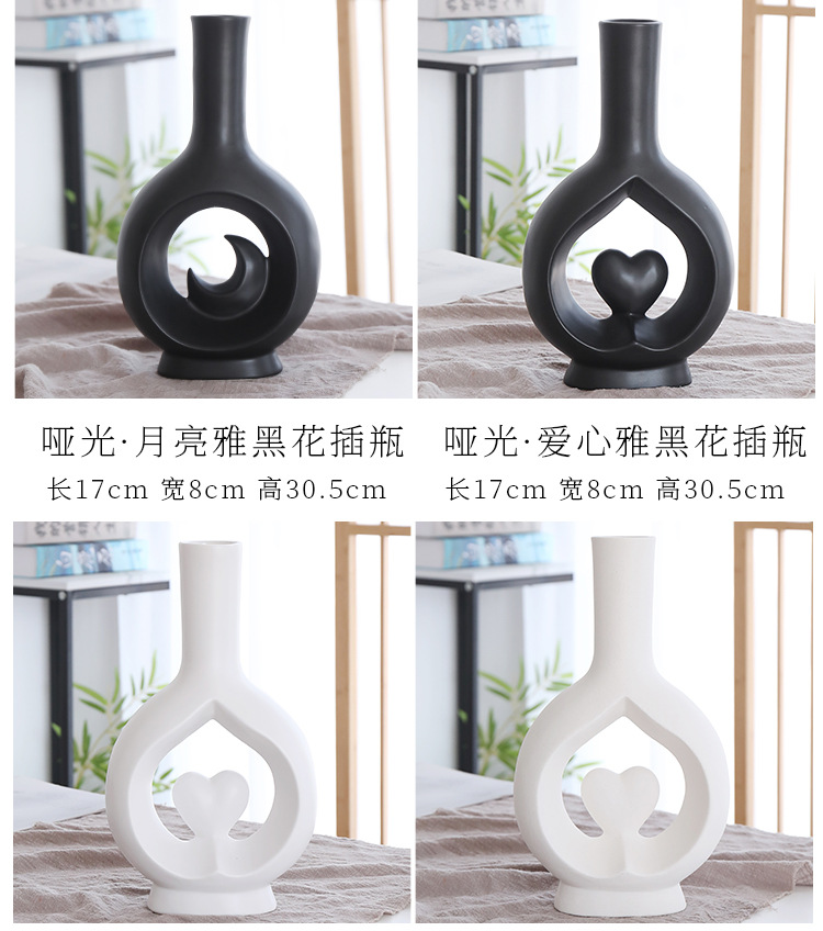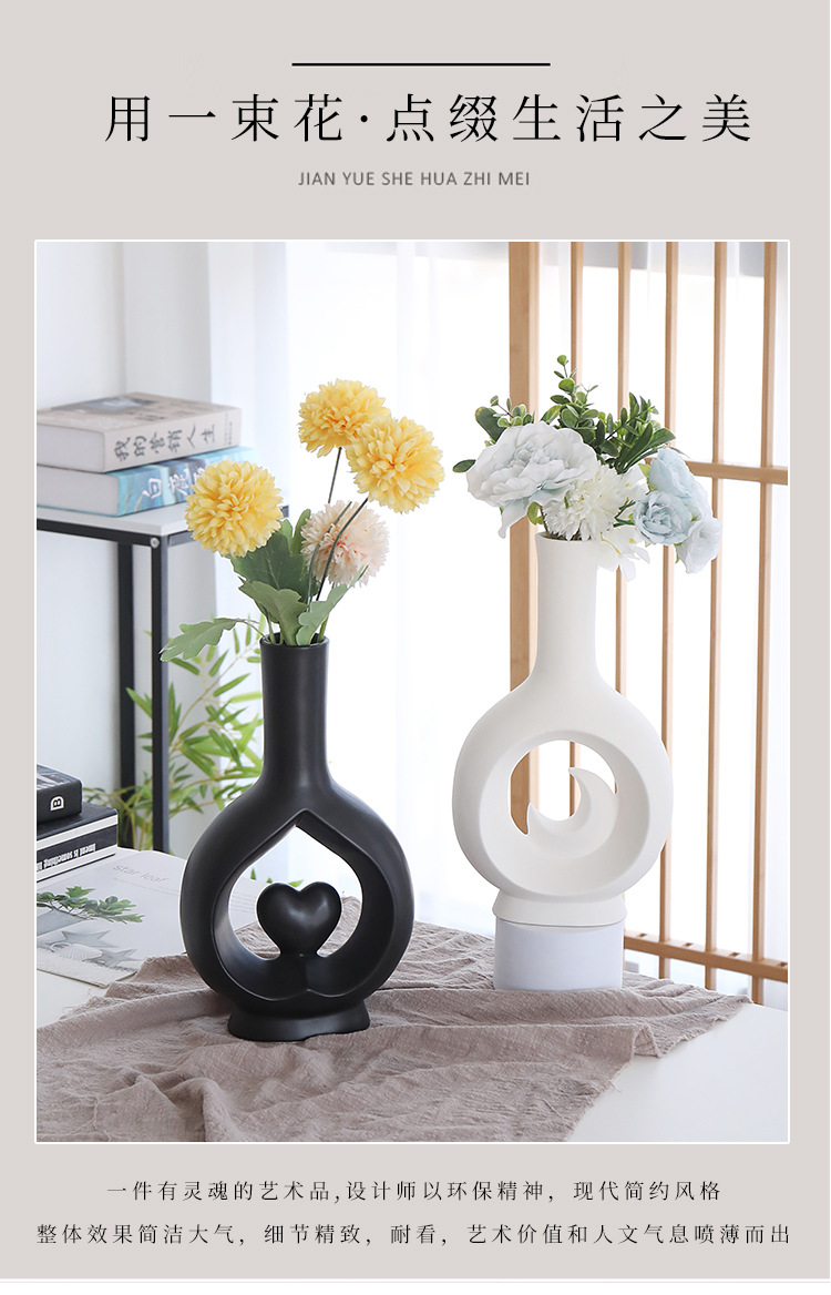 북유럽 크리에이 티브 현대 간단한 중공 세라믹 꽃병 홈 거실 데스크탑 말린 꽃 장식품