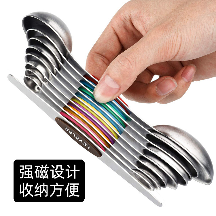 아마존 스테인레스 스틸 자기 흡수 8 피스 베이킹 도구 더블 헤드 스케일 측정 스푼 세트