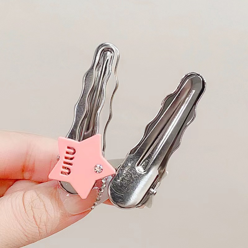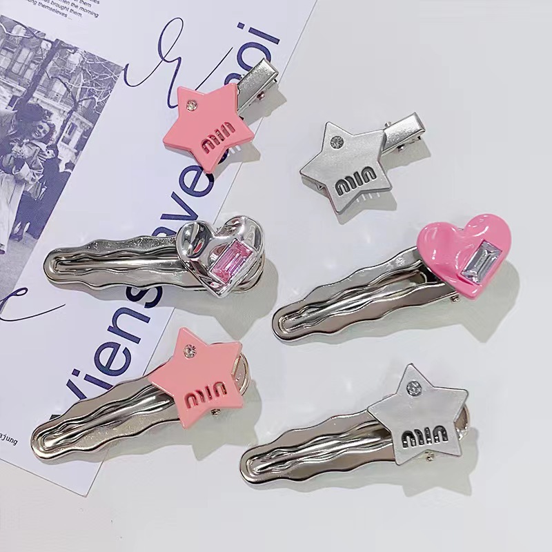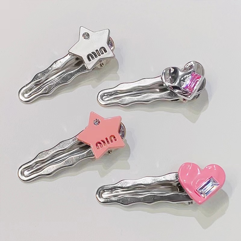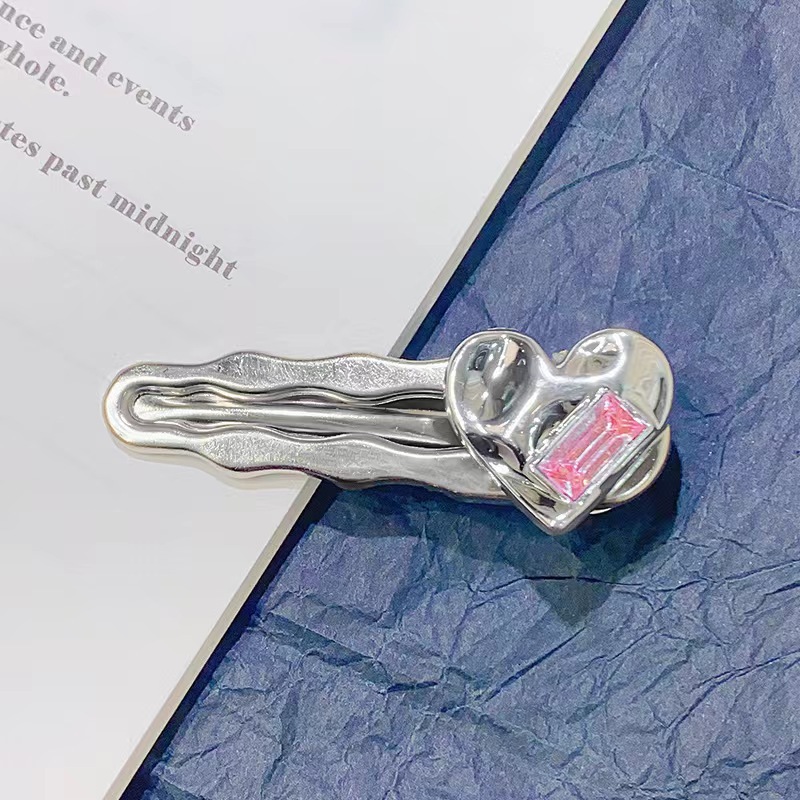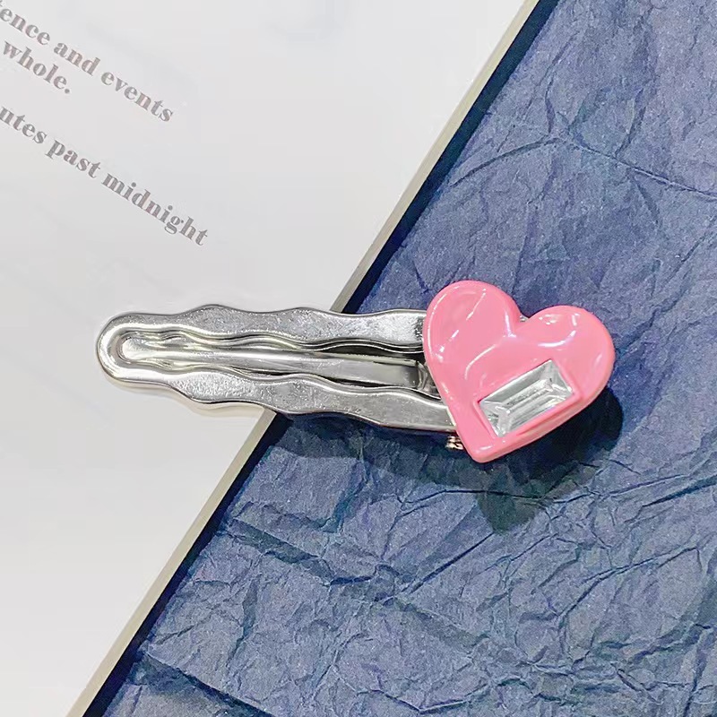 핑크색 하트 크리스탈 머리핀, 숲속 소녀 스타일 메탈 앞머리핀, 앞머리 클립, 옆머리 클립, 이우 헤어 액세서리