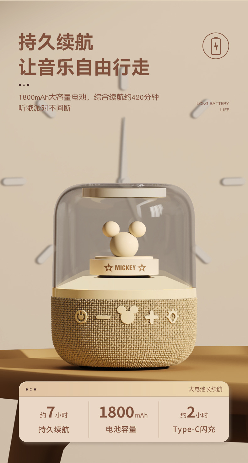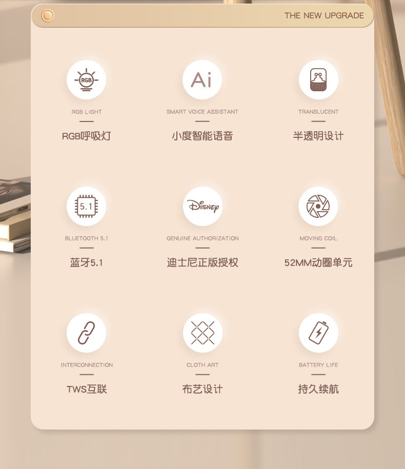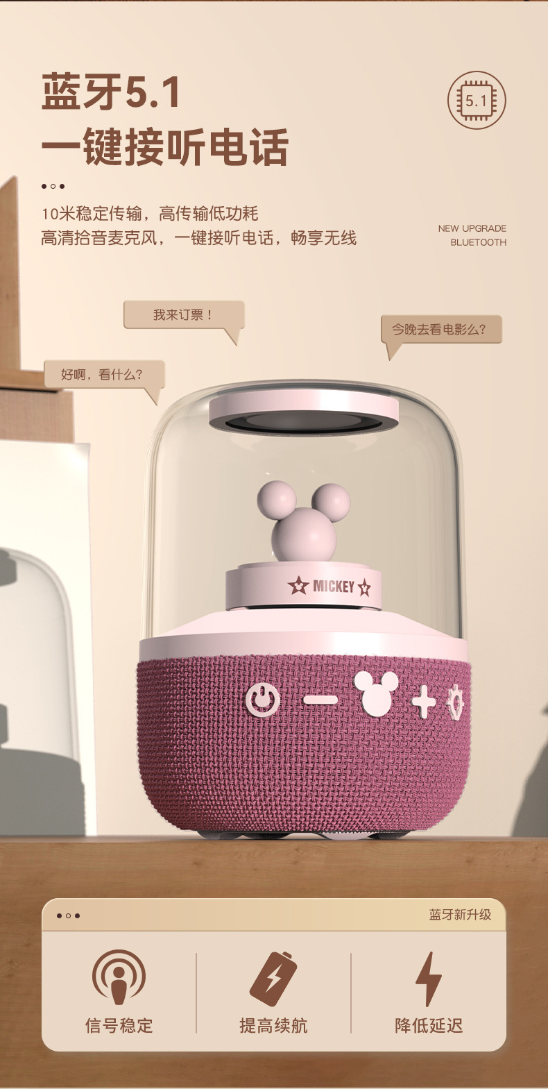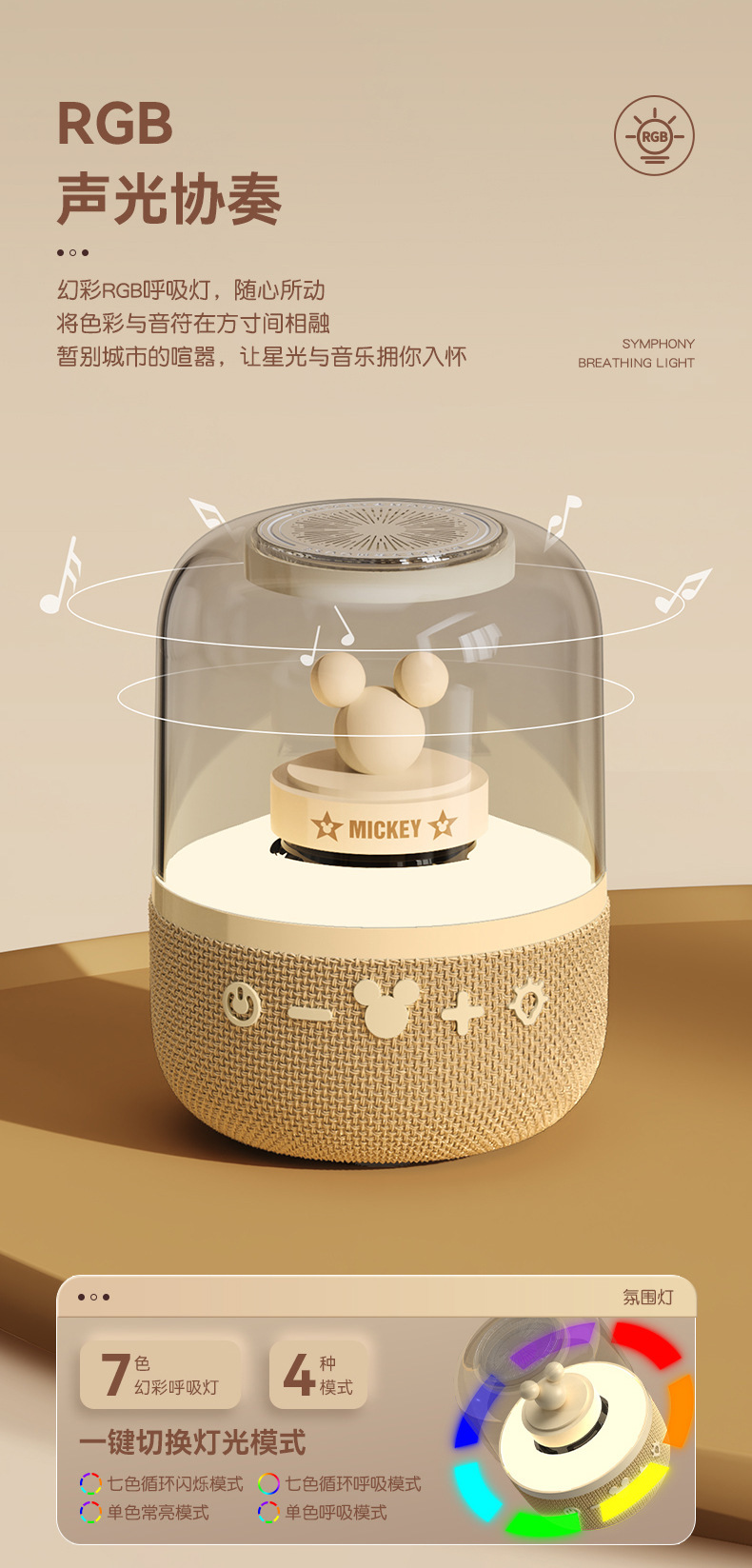 Disney/迪士尼新款AI小度智能对话蓝牙音箱RGB音随律动灯效,支持一件代发,详询客服