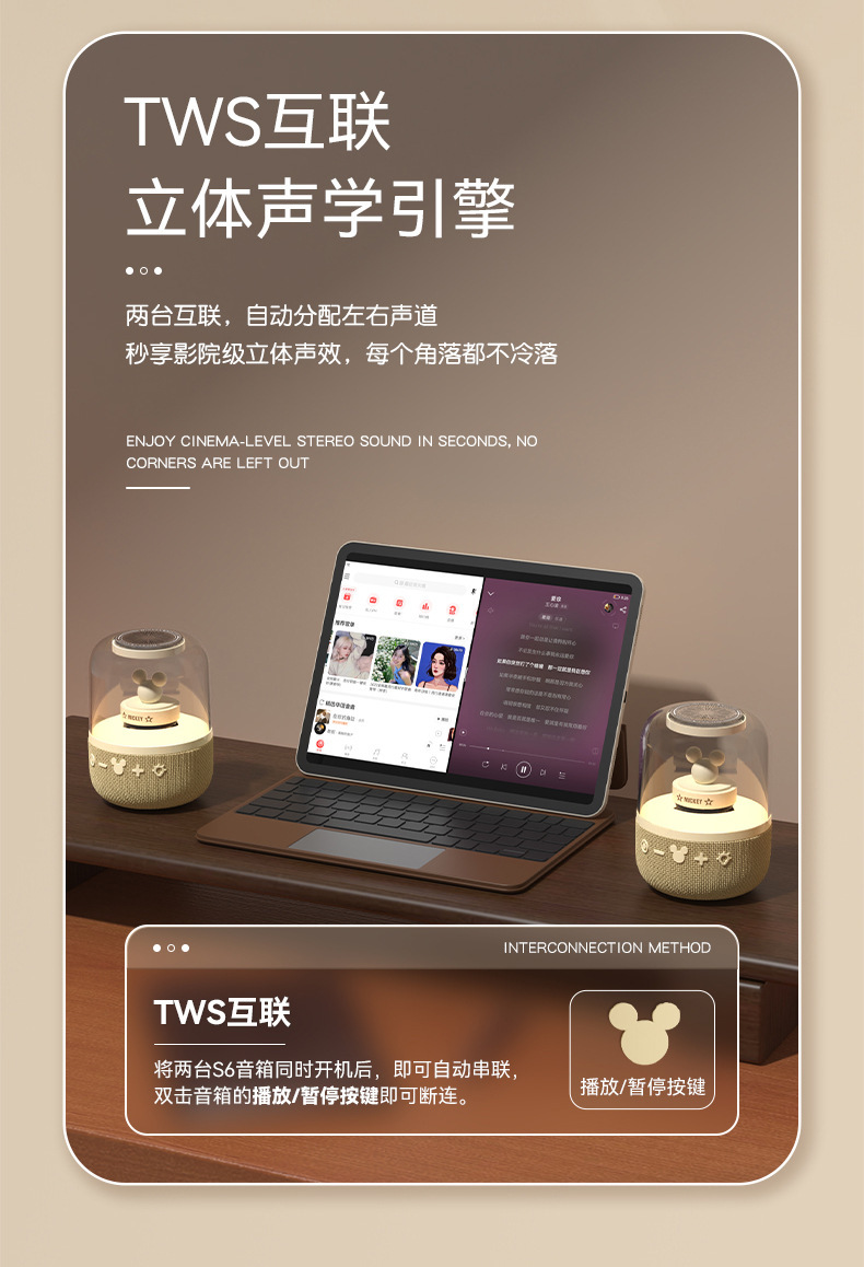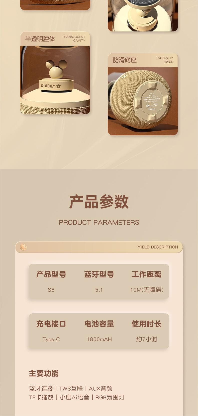디즈니 AI 소형 스마트 블루투스 스피커 S6 다채로운 조명 효과 무선 시리즈 TF 카드 데스크탑 기숙사 하이 컬러 값