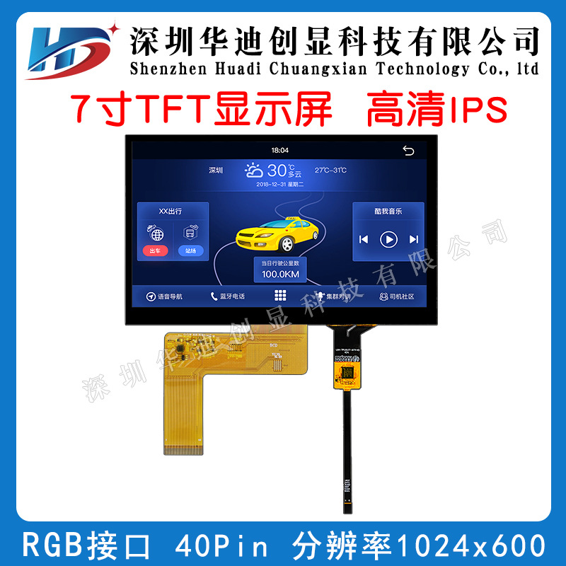 7 인치 IPS 산업 등급 고화질 LCD 화면 해상도 1024*600 RGB 인터페이스 플러그 40PIN