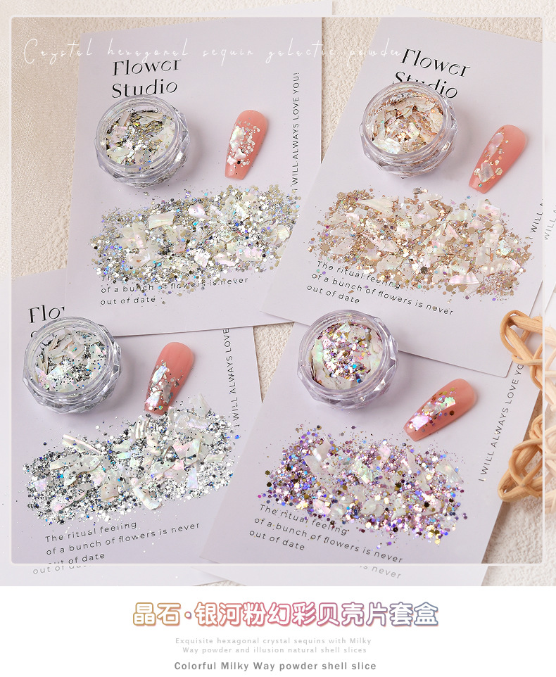 네일 아트 버스트 스톤 스톤 갤럭시 파우더 매직 컬러 초박형 쉘 조각 반짝이 스팽글 혼합 엄격하게 선택된 네일 쥬얼리 세트