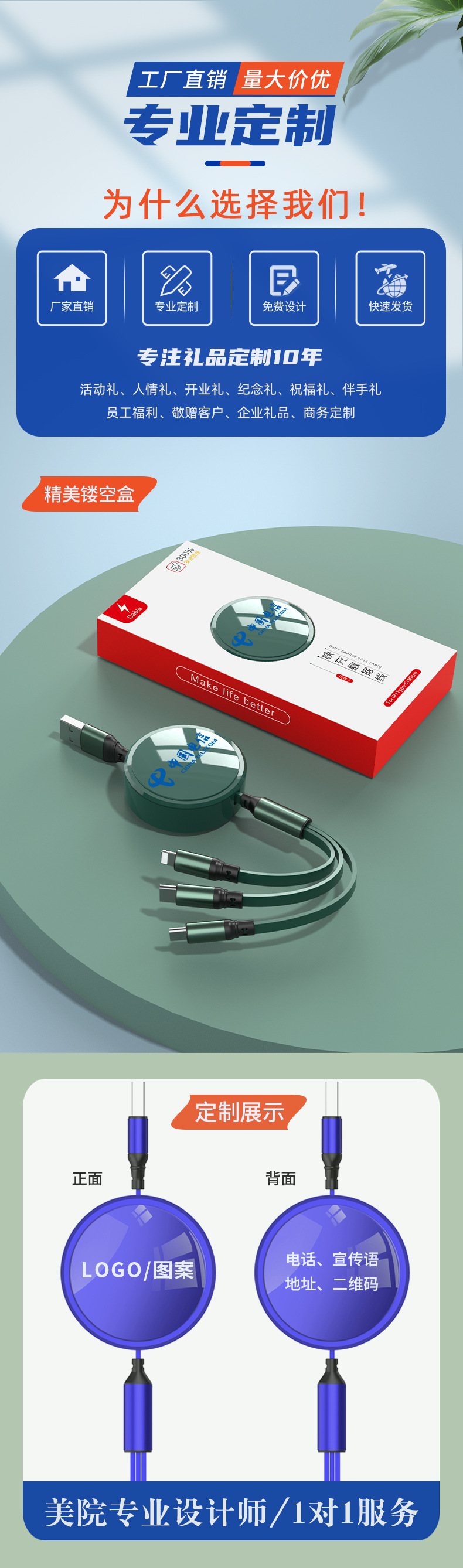 공장 다이렉트 쓰리인원 100W 텔레스코픽 원투쓰리 데이터 라인 도매 인쇄 로고 광고 크리에이티브 선물스토어 가기